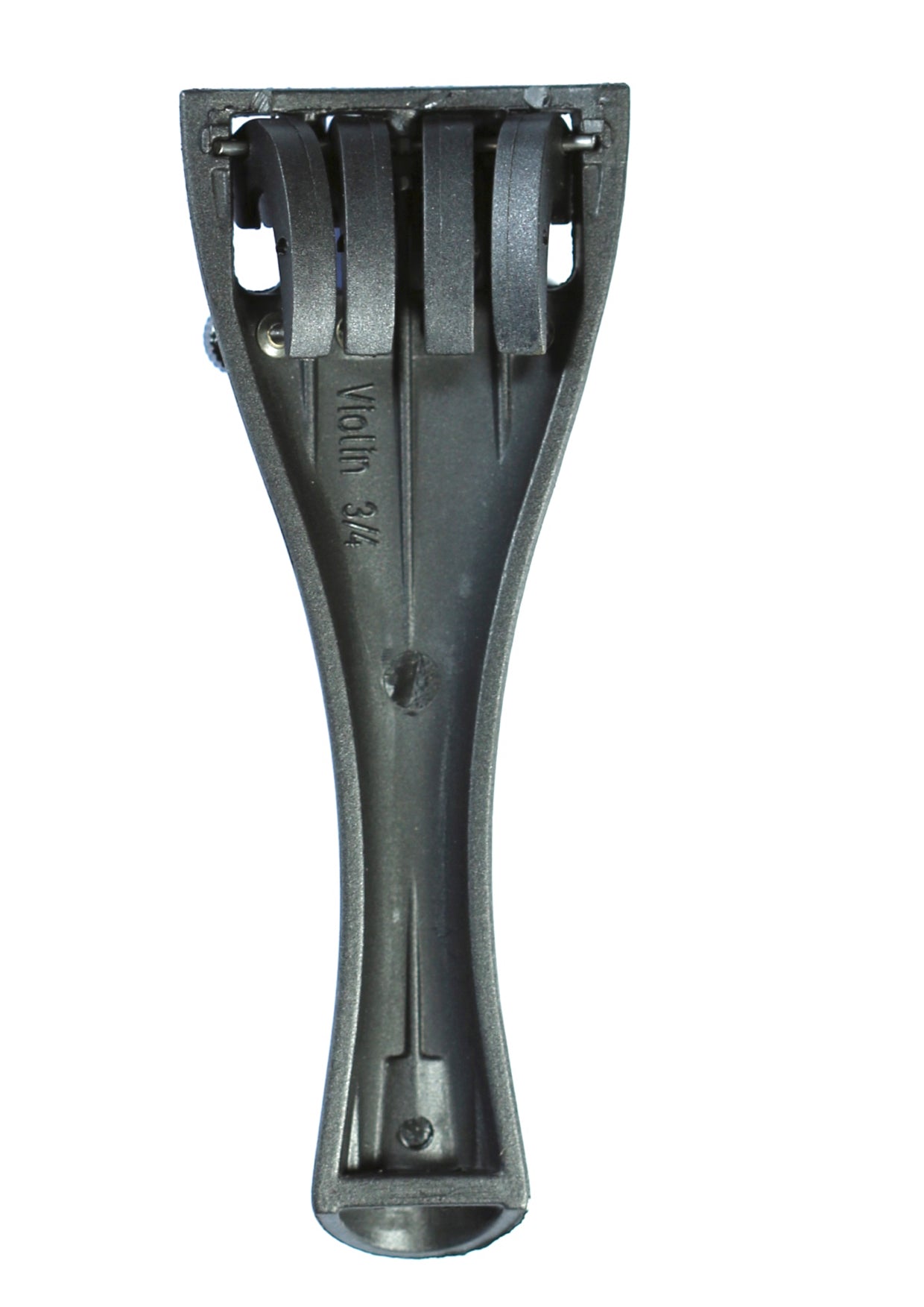 3/4 size durable composite/plastic violin tailpiece with built in fine tuners and nylon tie included