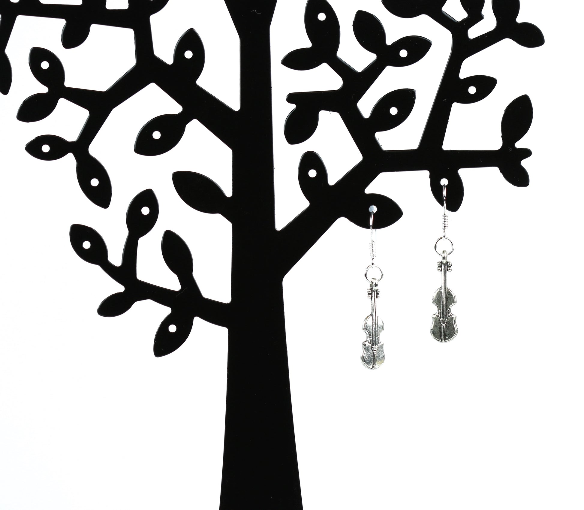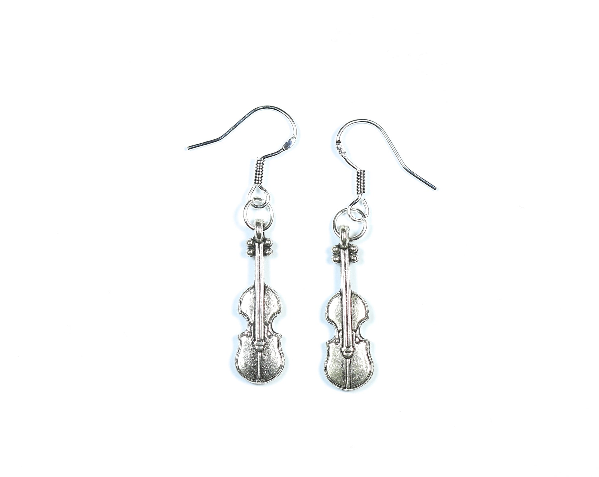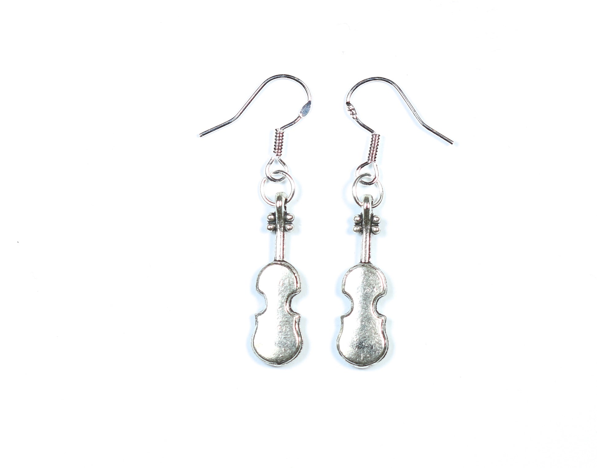 New pair of 925 sterling silver ear wire/hook violin drop earrings inc free red pouch