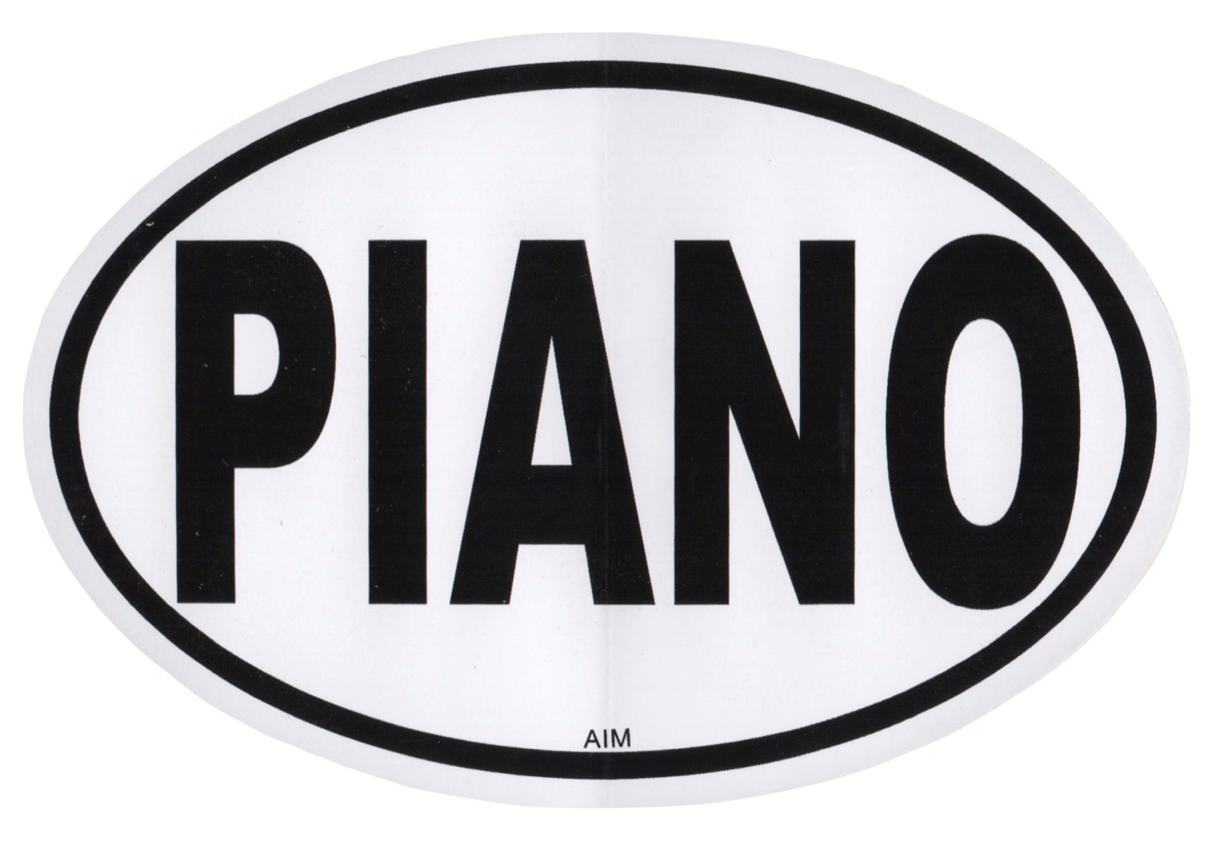 AIM Gifts (USA) branded quality oval bumper sticker “PIANO” Measurements: 11.5cm Long and 7.5cm Wide.