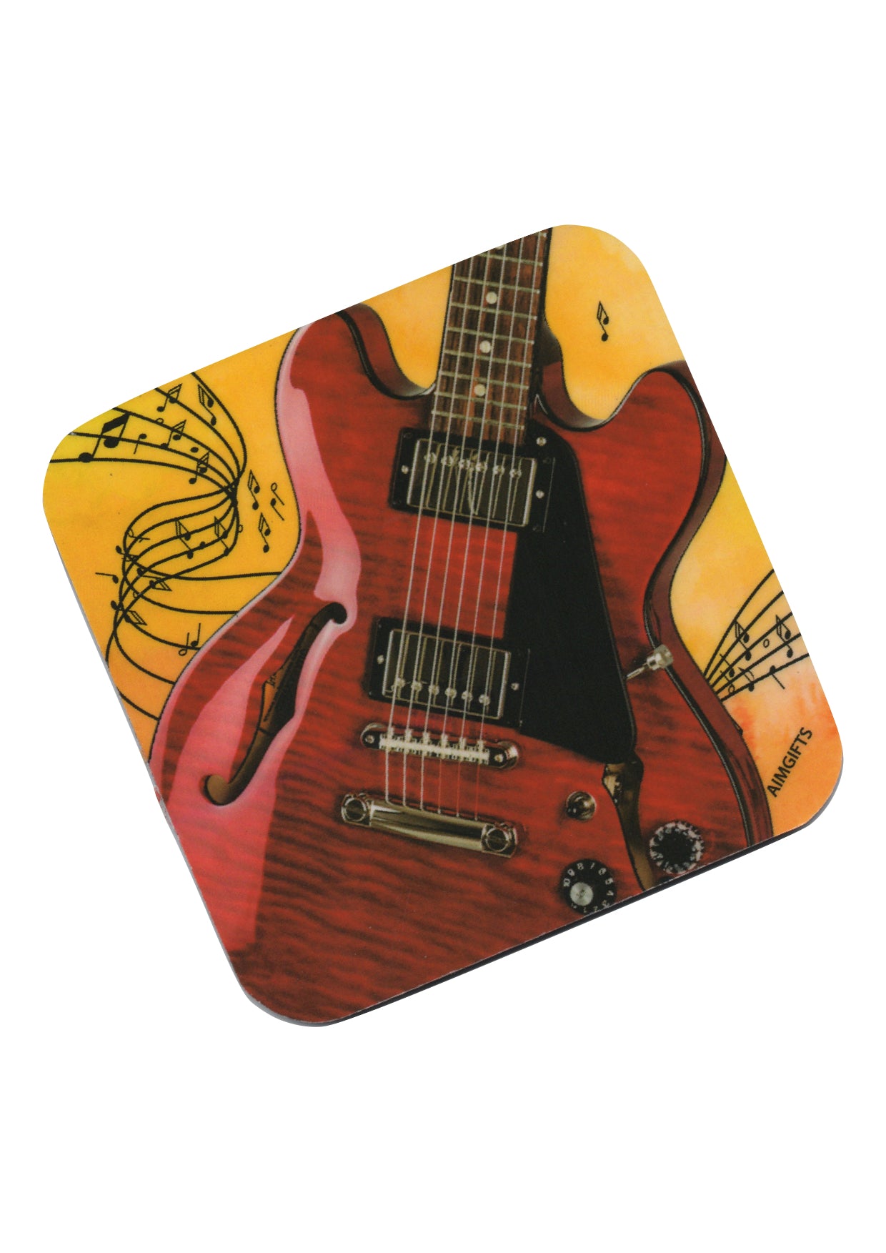 AIM Gifts single vinyl drinks coaster rubber non slip base red electric guitar