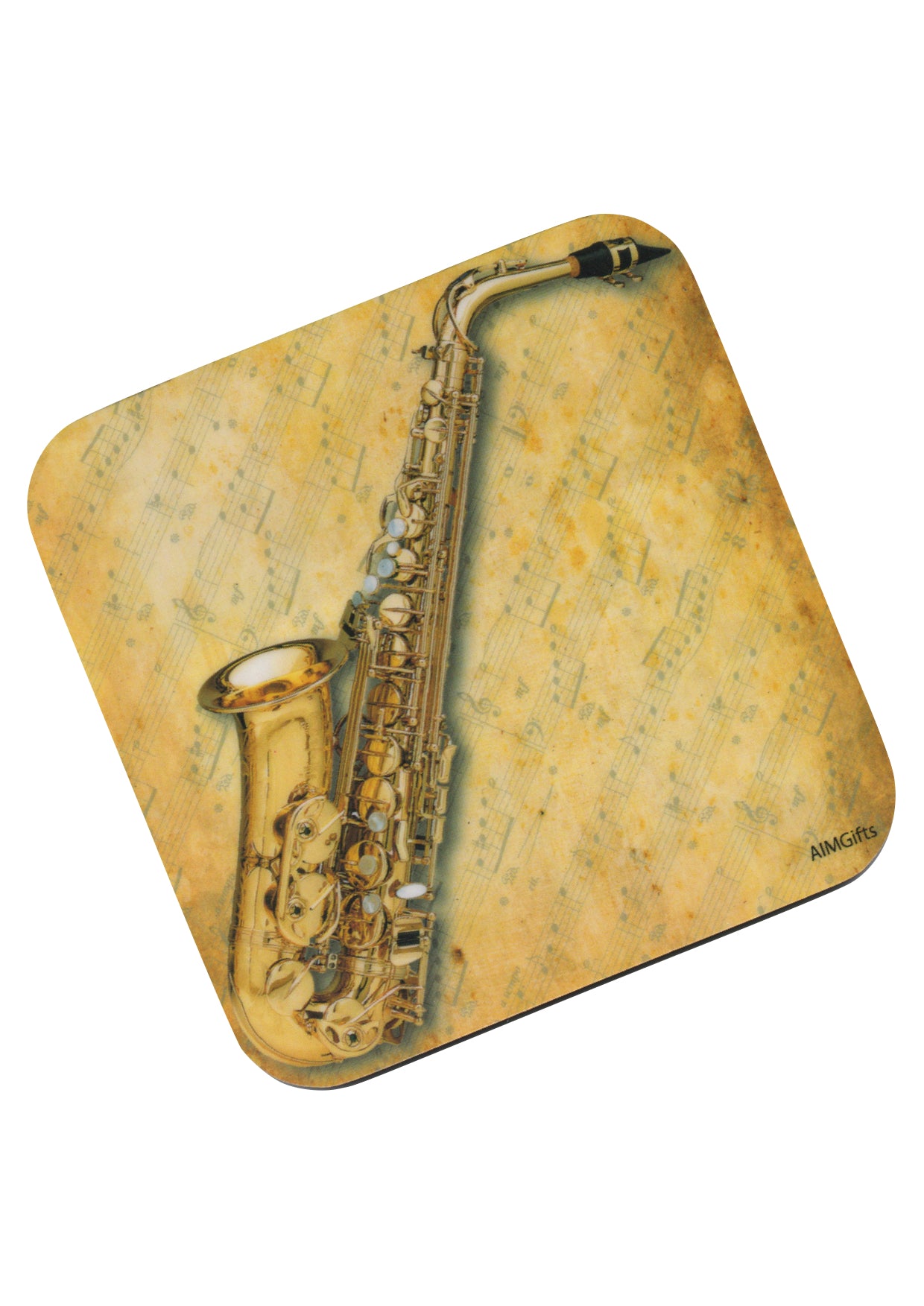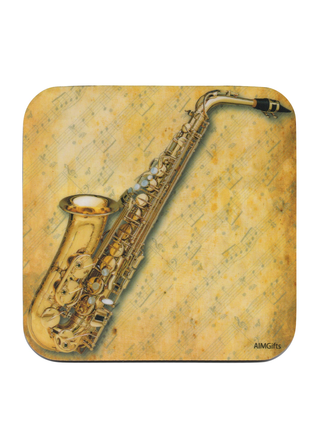 AIM Gifts single vinyl drinks coaster with rubber non slip base saxophone