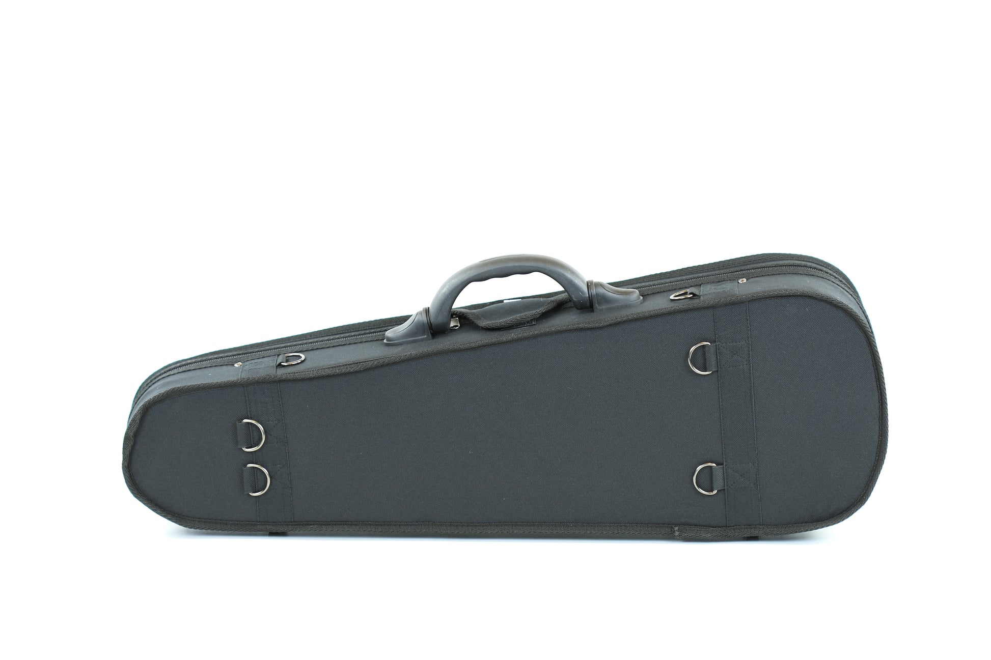 Black cordura dart shaped violin case 1/8 size light weight many features.