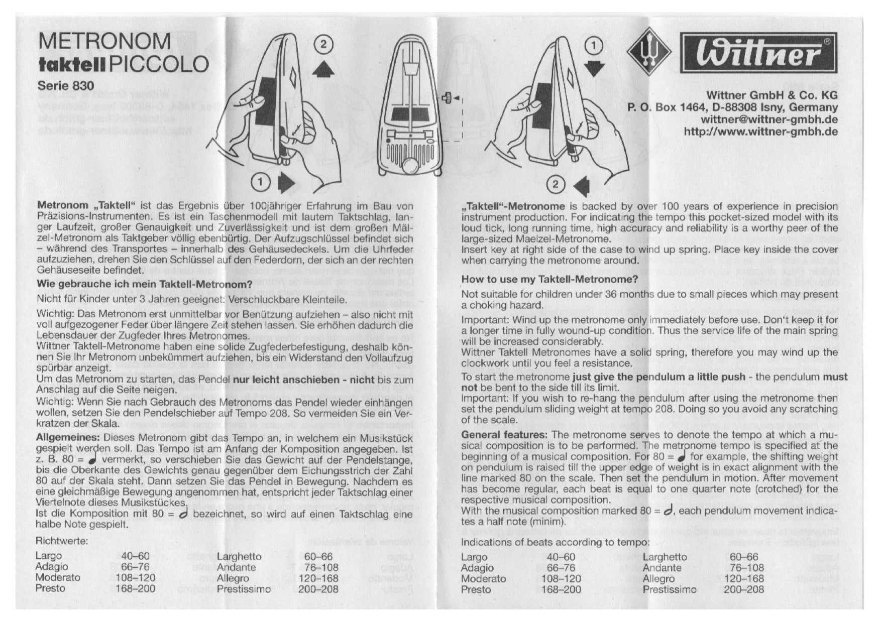 Black Wittner Taktell Piccolo pendulum metronome accurate and portable