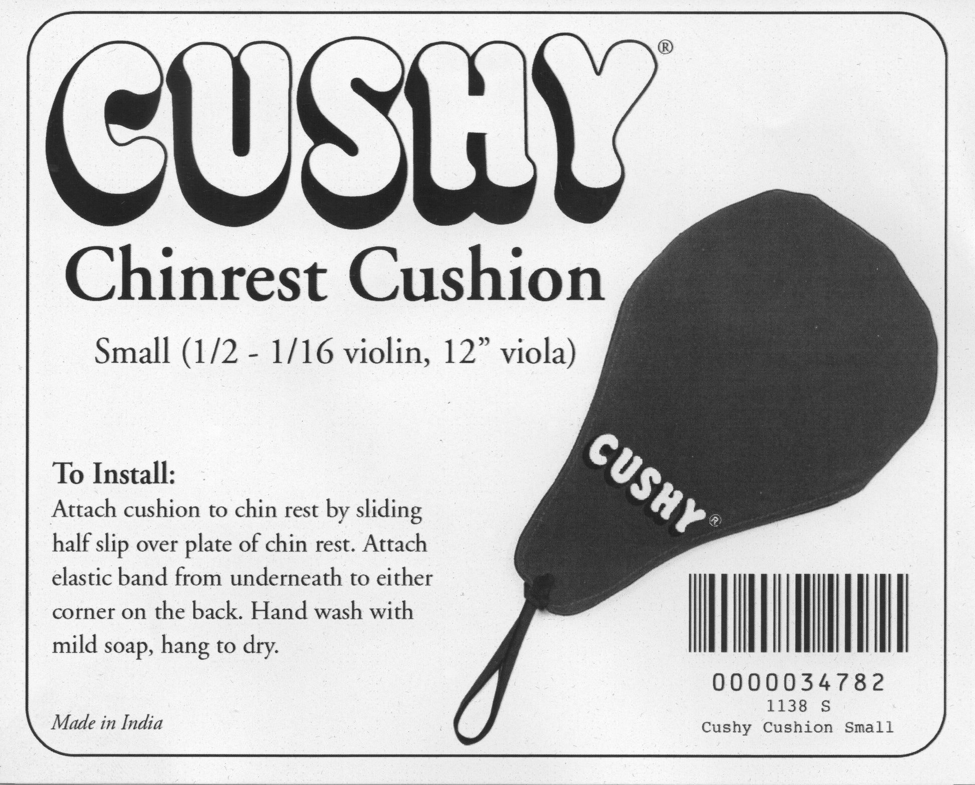 CUSHY Small black 1/2 - 1/16 violin 12” viola chinrest pad cushion elastic strap