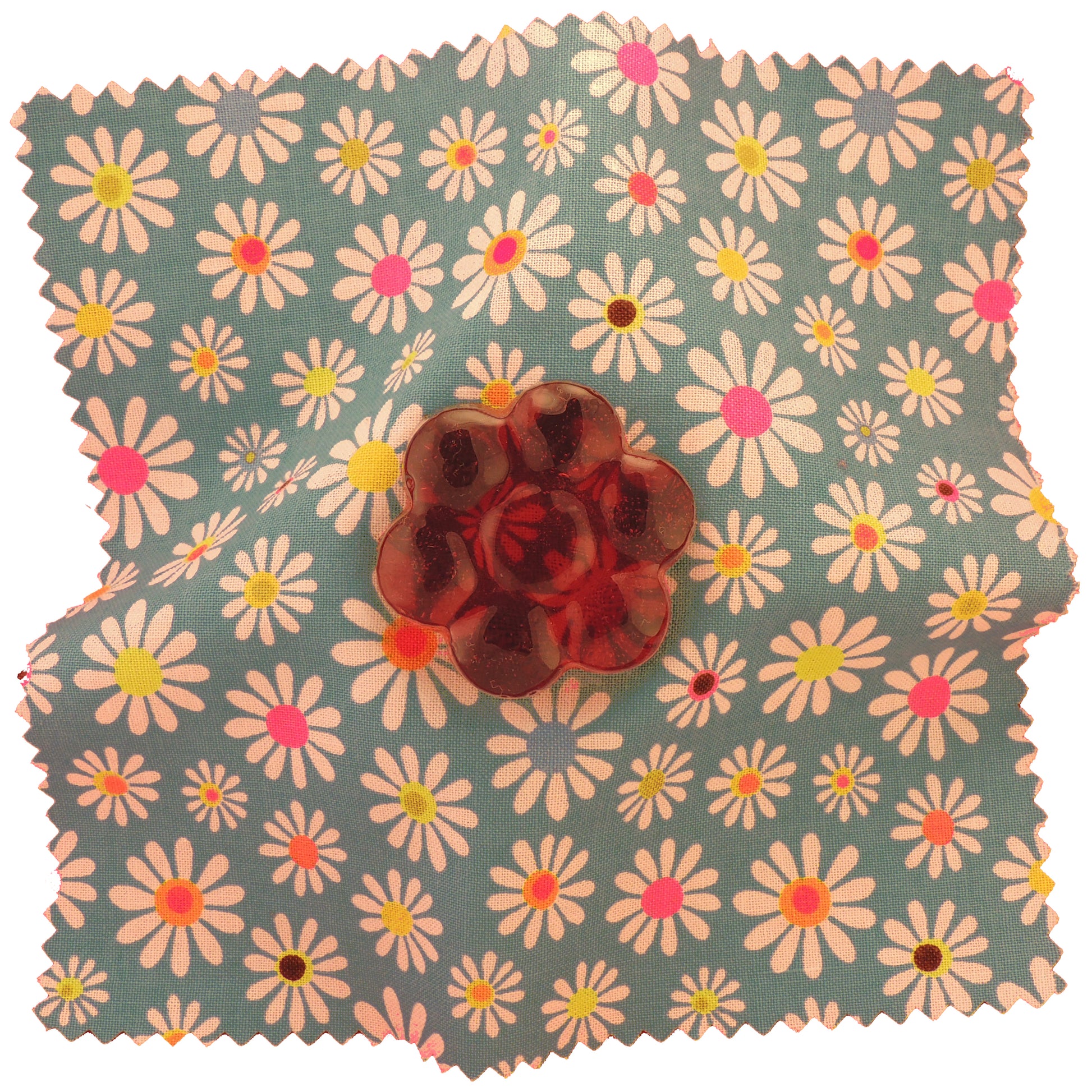 Rockin rosin for violin, viola or cello. Daisy shape rosin with corresponding printed fabric