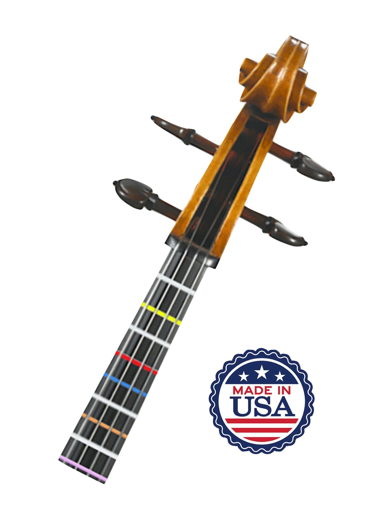 Self-adhering vinyl strip fits onto fingerboard (below the strings) and has colour coded frets to indicate note intervals and positions. Adhesive strip thin enough not to cause any string buzz.