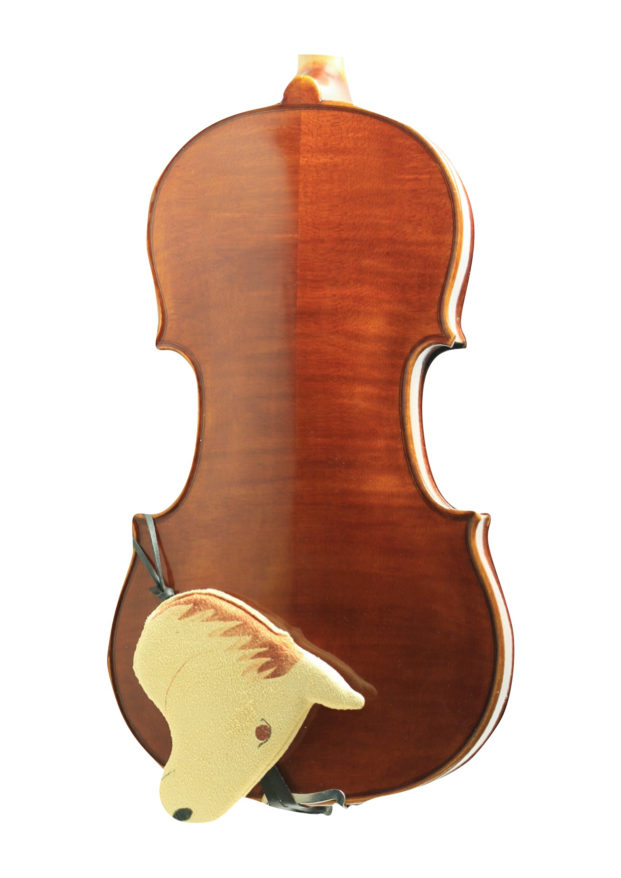 Fiddle Friends “Sympony” is a shoulder rest made of chamois, leather, non-toxic paint and natural rubber for use on all sized Violins or Violas.