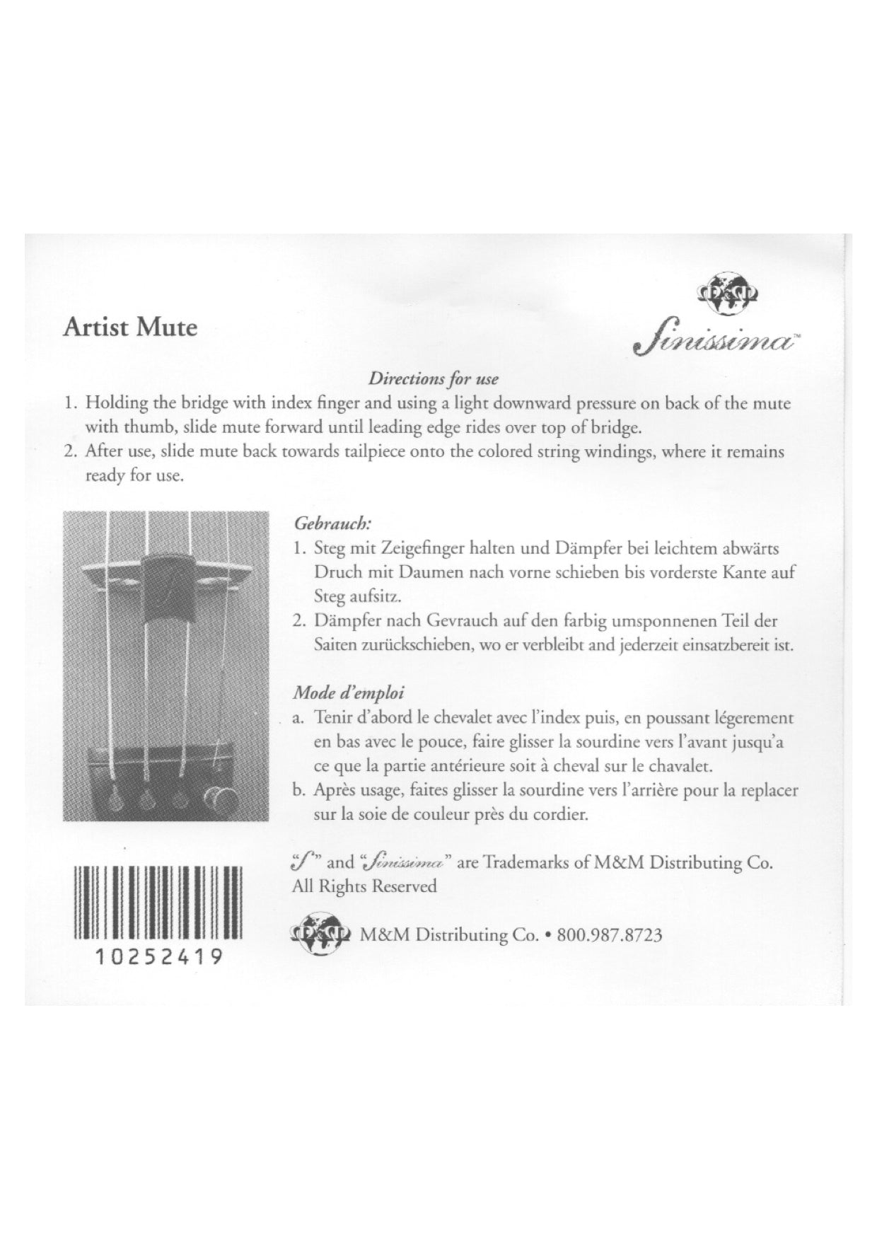 Finissima Artist Violin Mute to suit 4/4 - 3/4 Size. Easy install/usage.