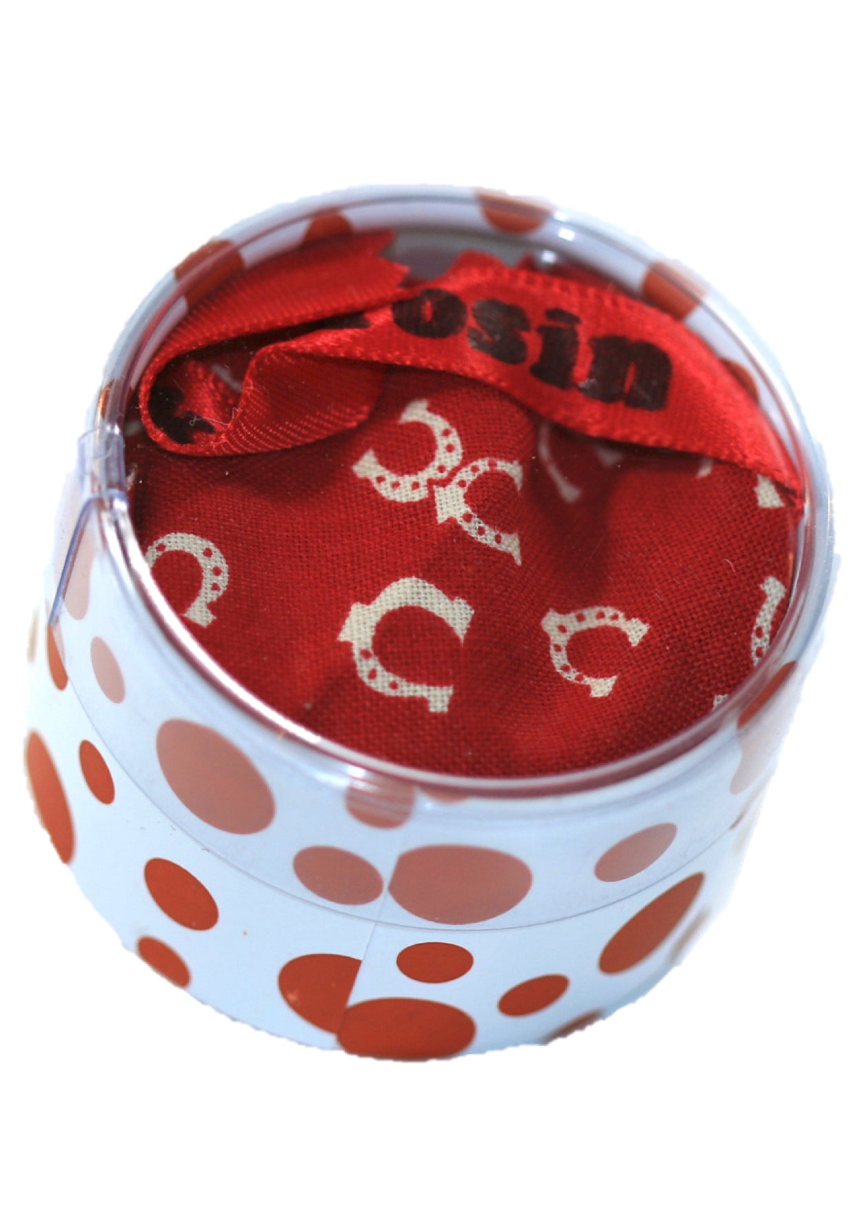 Rockin Rosin for violin, viola or cello. Horse shaped rosin with corresponding printed fabric