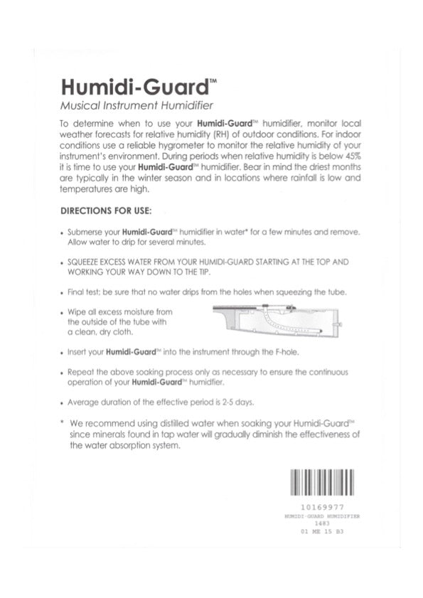 Humidi-Guard may be left inside instrument whilst played and there will be no tonal loss of vibrations.