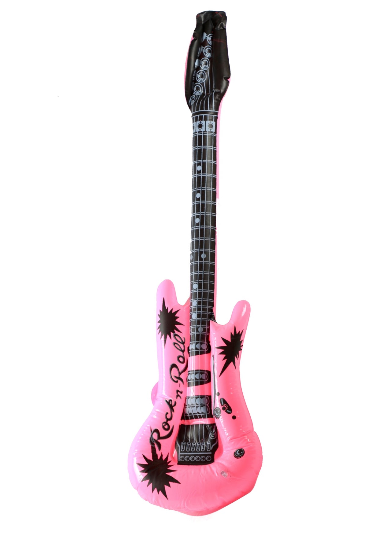 Inflatable novelty musical 40” pink coloured rock electric guitar