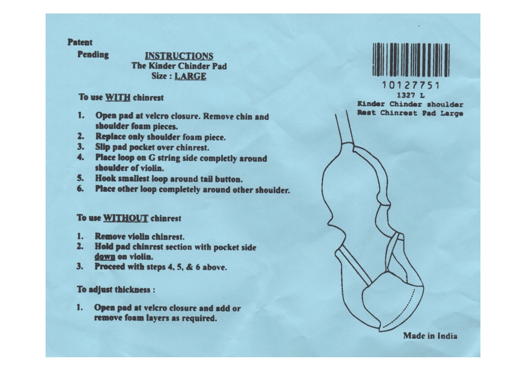 The Kinder Chinder Pad protects the player’s neck from chin rest metal clamps and violin/viola hickeys.