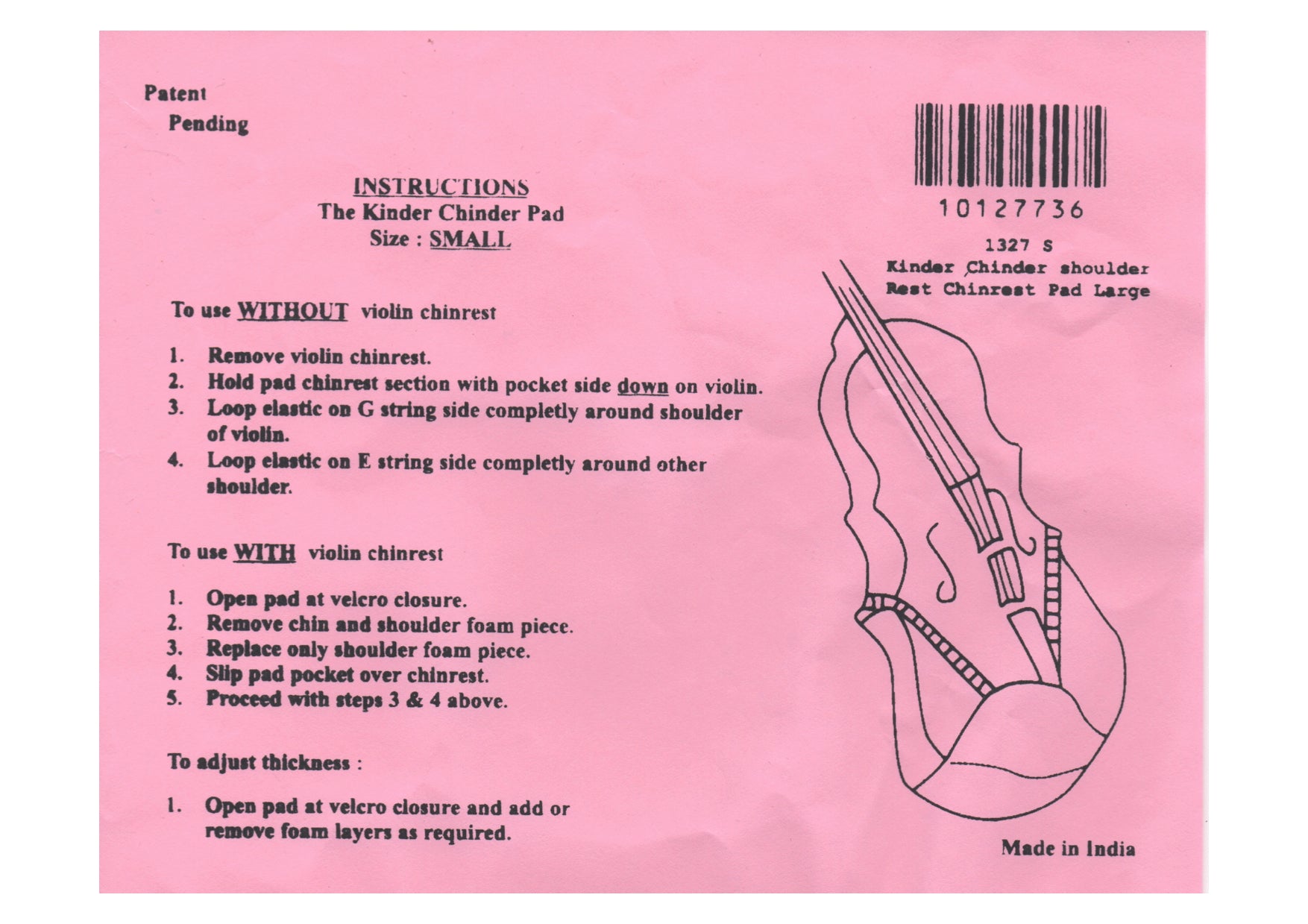 The Kinder Chinder Pad protects the player’s neck from chin rest metal clamps and violin/viola hickeys.