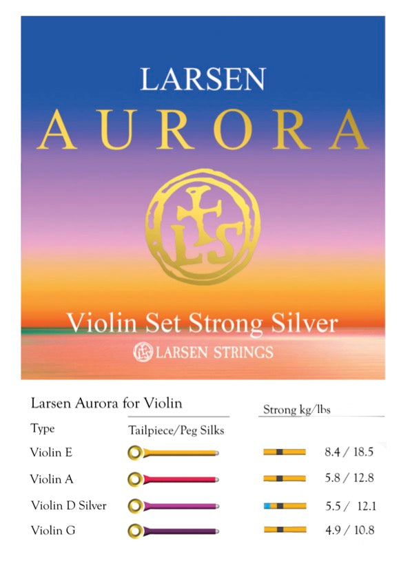 Larsen Aurora violin string set 4/4 STRONG SILVER D Made in Denmark