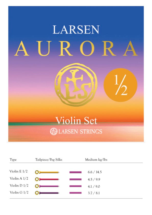 Larsen Aurora violin strings are suitable to players of all ages, from the youngest beginner student to the seasoned player looking for a new, higher quality, reference standard for violin strings.
