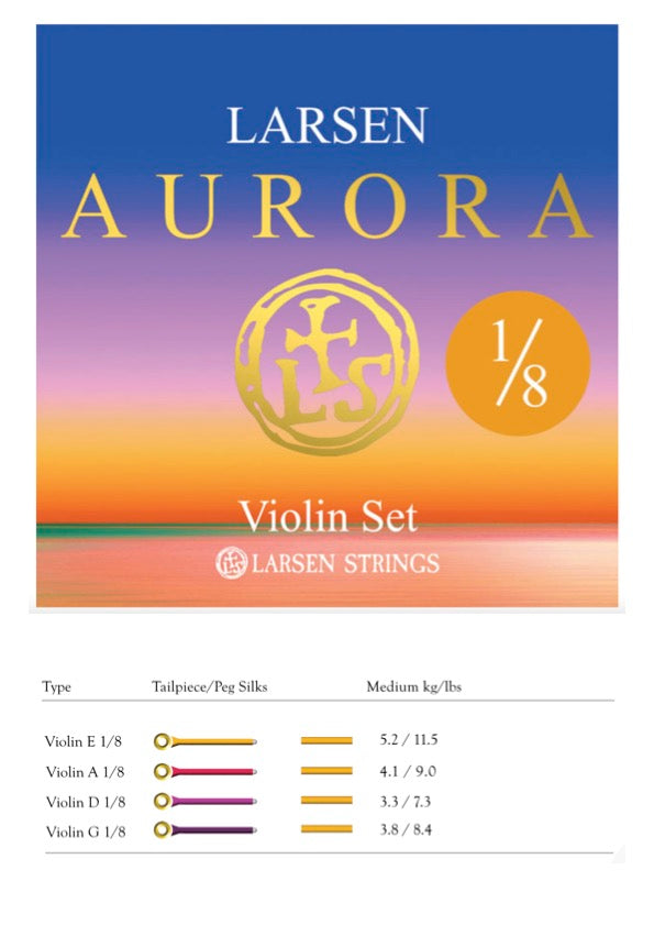 Larsen Aurora violin strings are suitable to players of all ages, from the youngest beginner student to the seasoned player looking for a new, higher quality, reference standard for violin strings.