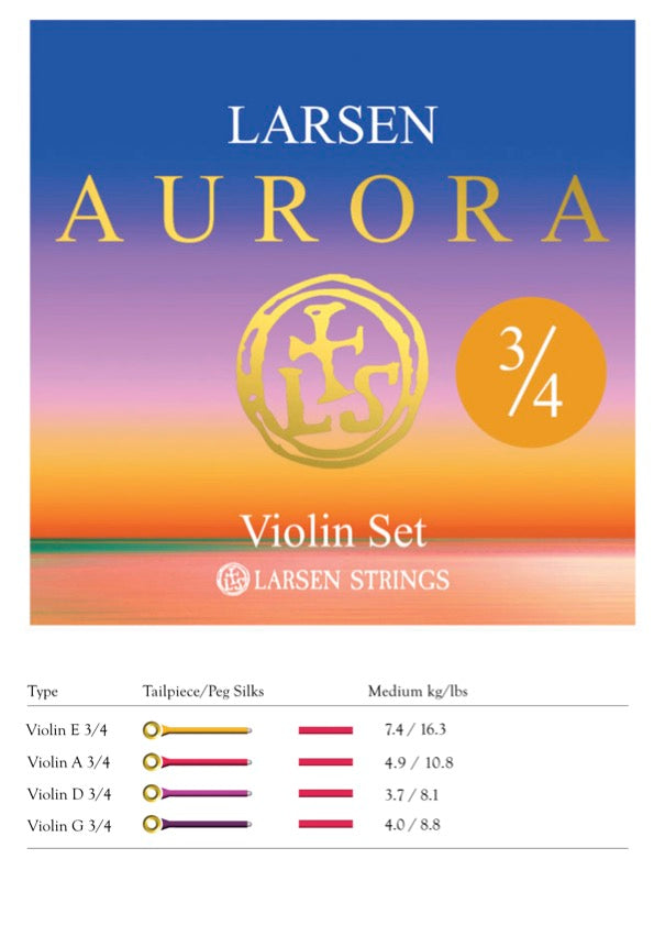 Larsen Aurora violin strings are suitable to players of all ages, from the youngest beginner student to the seasoned player looking for a new, higher quality, reference standard for violin strings.