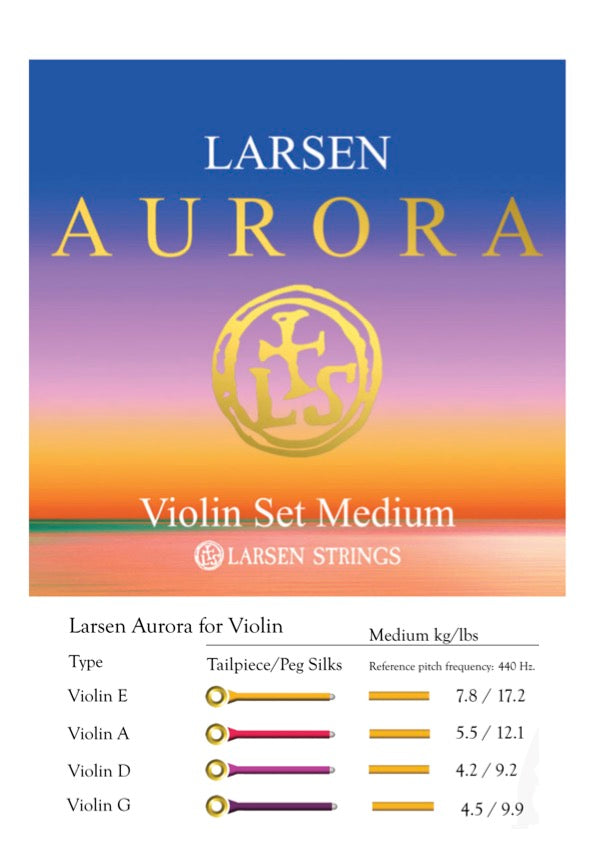 Larsen Aurora violin strings are suitable to players of all ages, from the youngest beginner student to the seasoned professional looking for a new, higher quality, reference standard for violin strings.