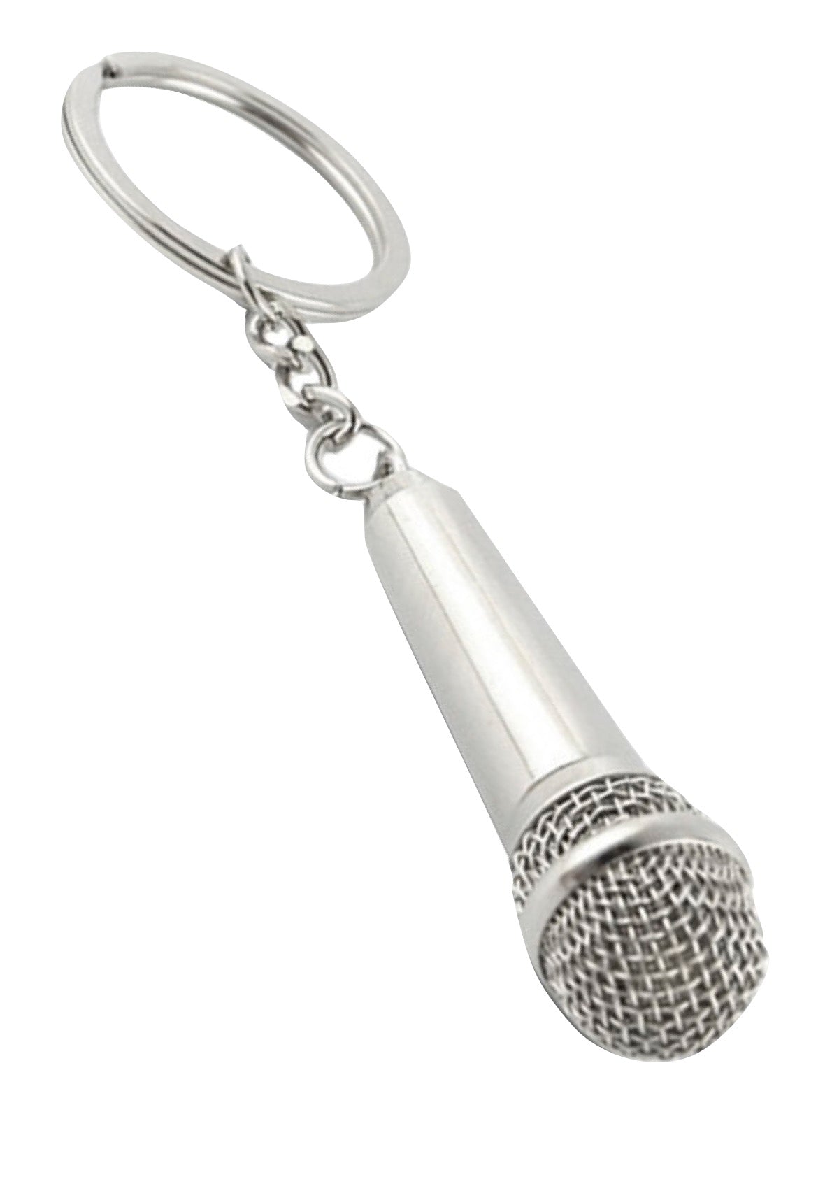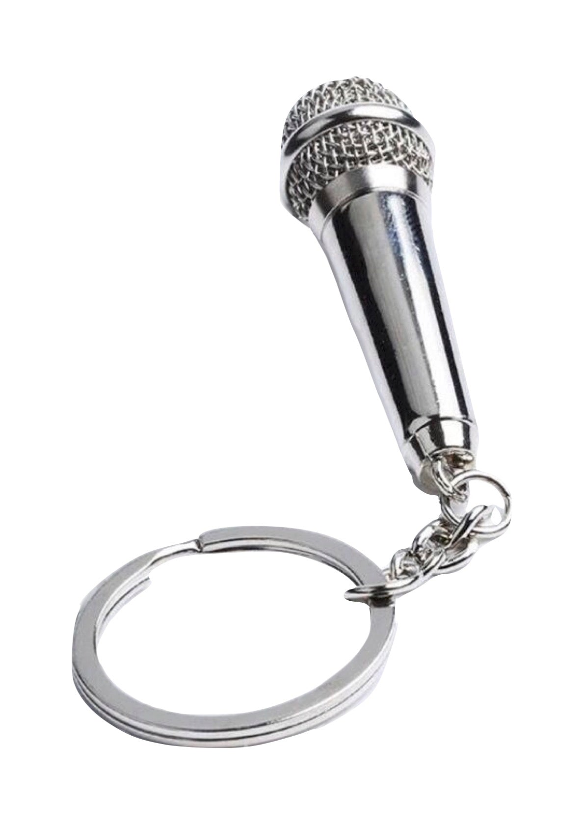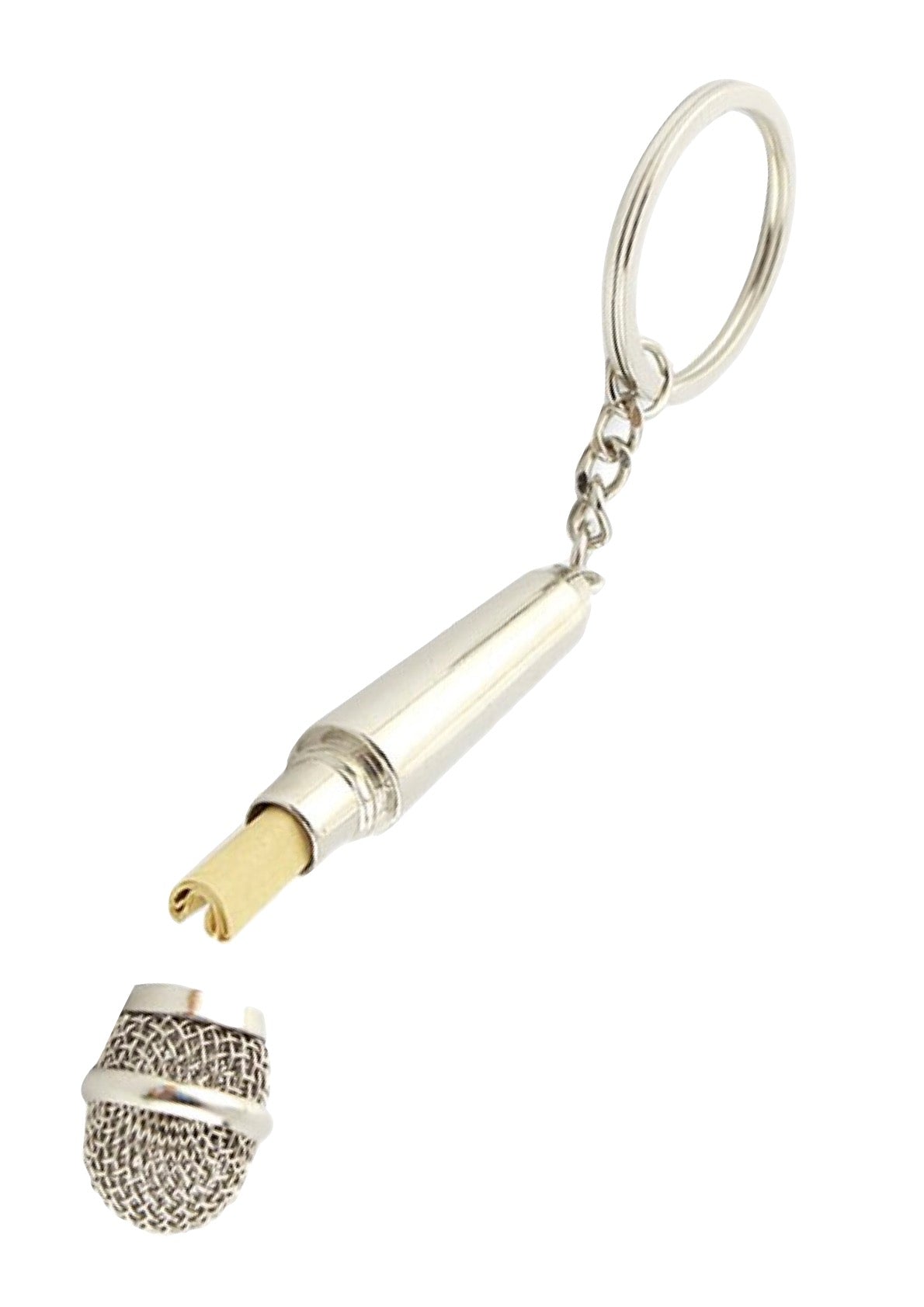 Metal microphone keychain trinket screwable grille chrome finish