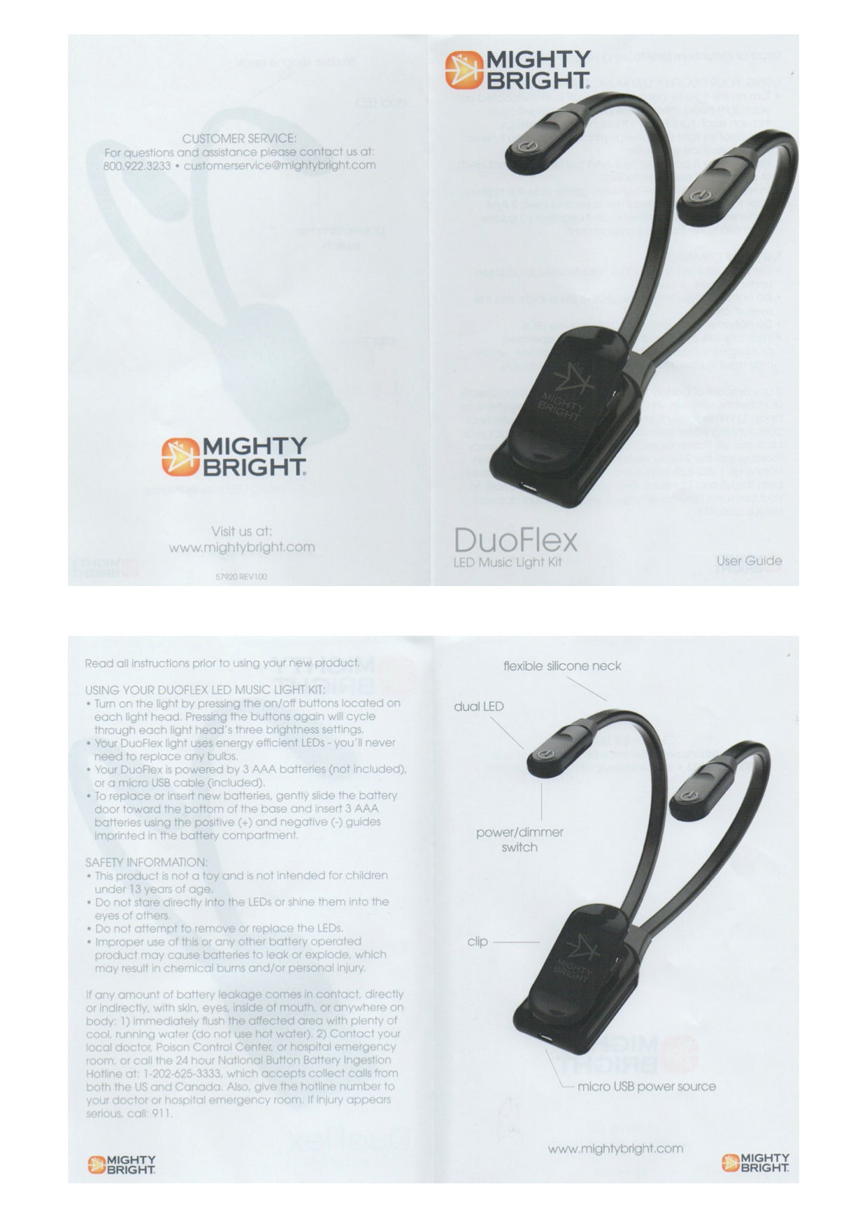 The Mighty Bright Duo Flex music light is suitable for low light, high intensity situations. Suitable for musicians, FOH Mixers and systems Techs.