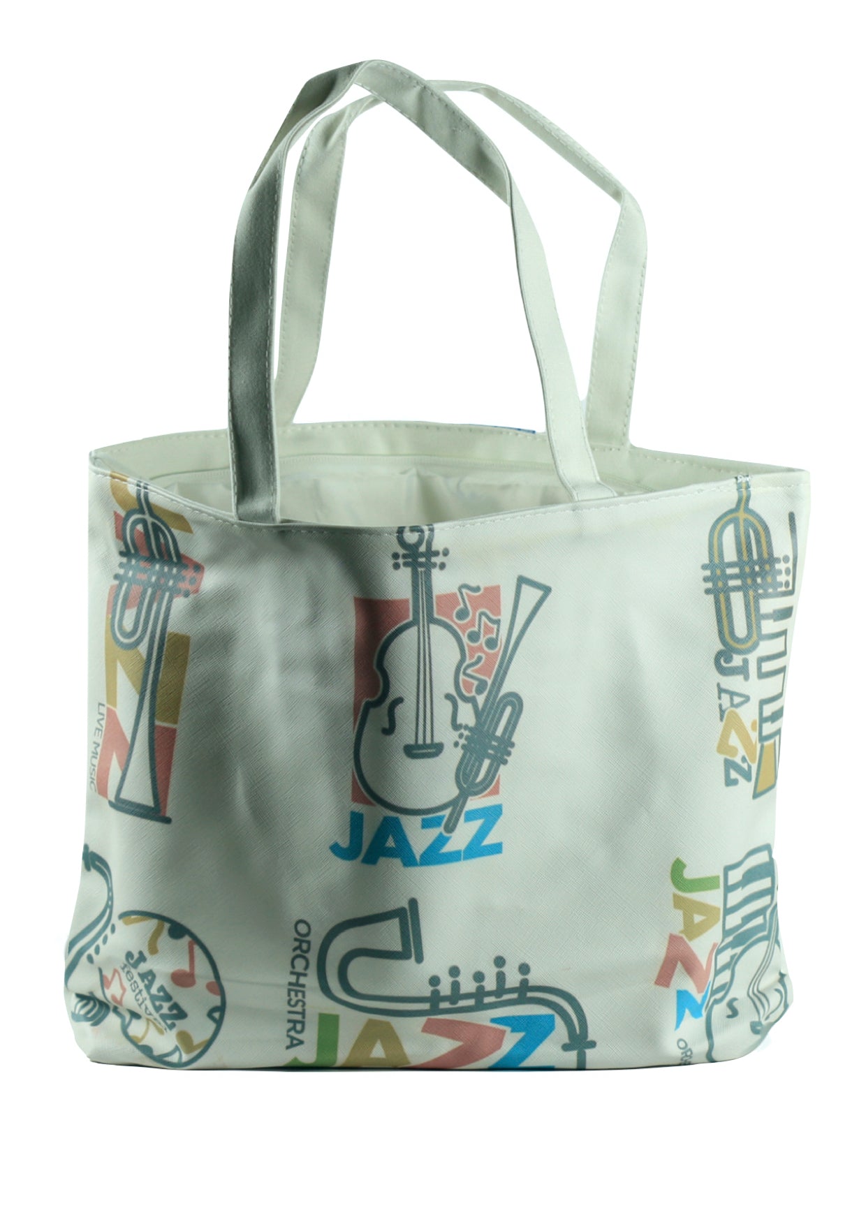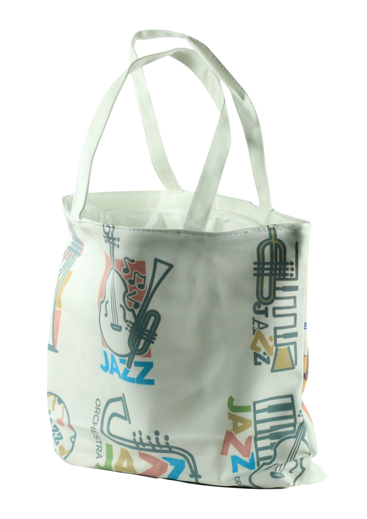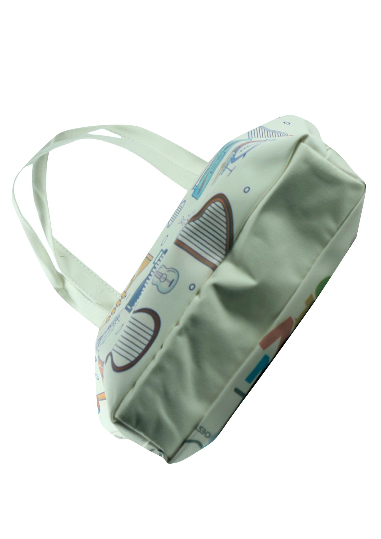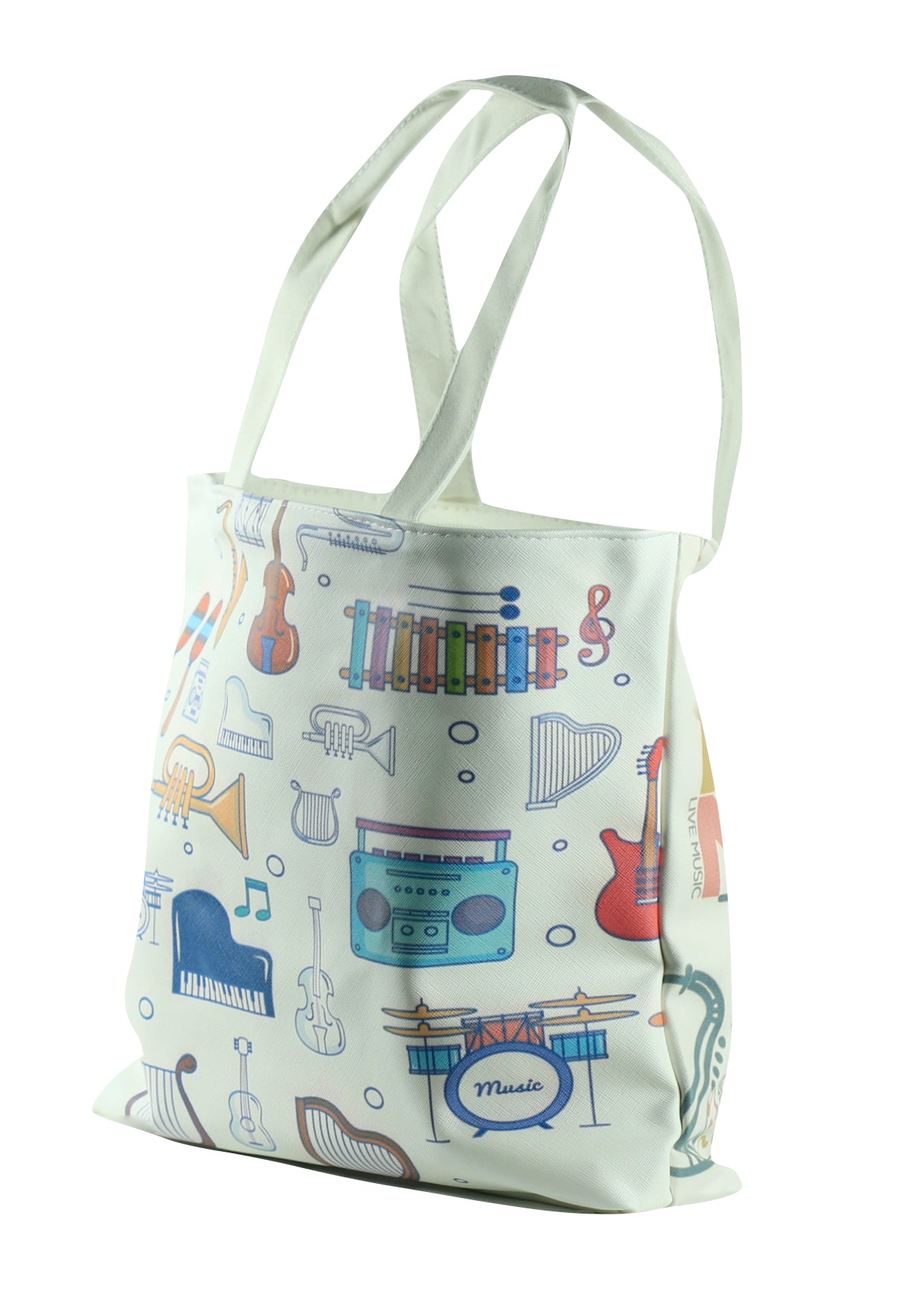 Different musical instrument themed pattern design is printed printed on both sides of the bag.