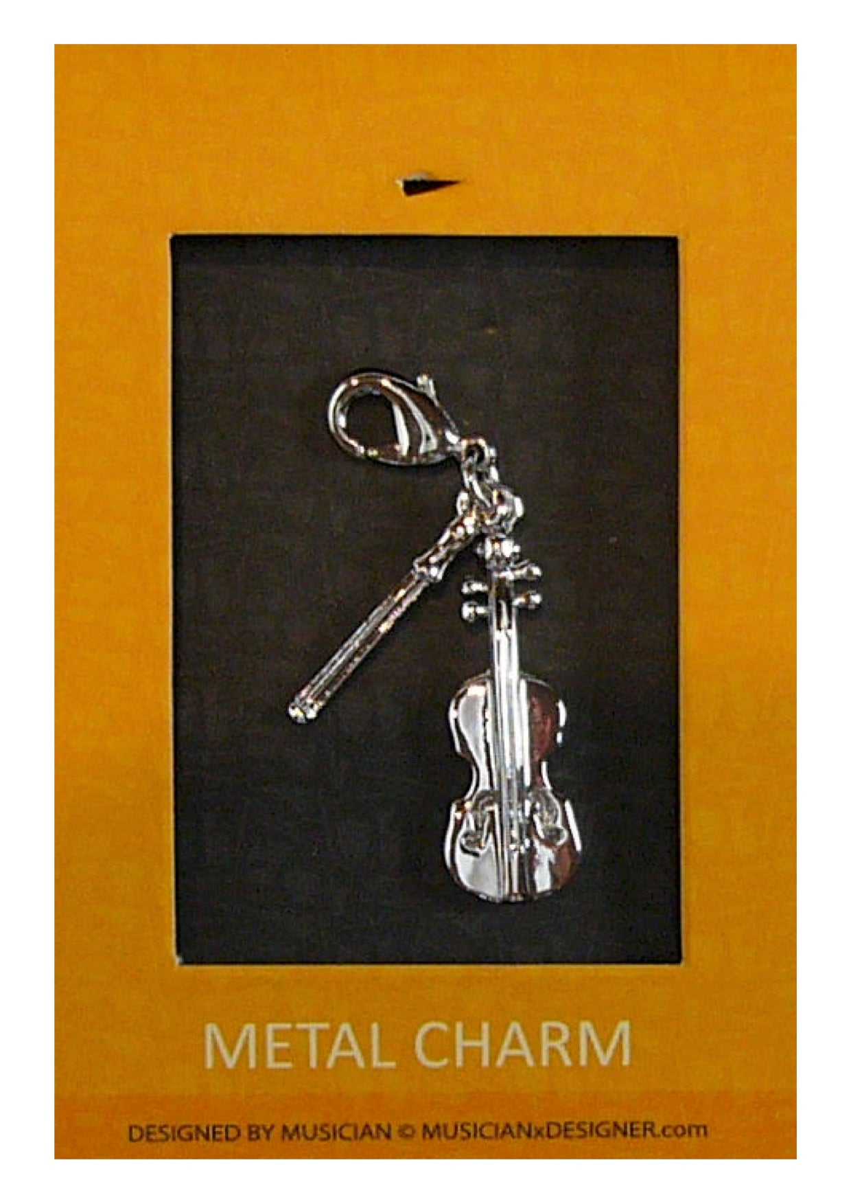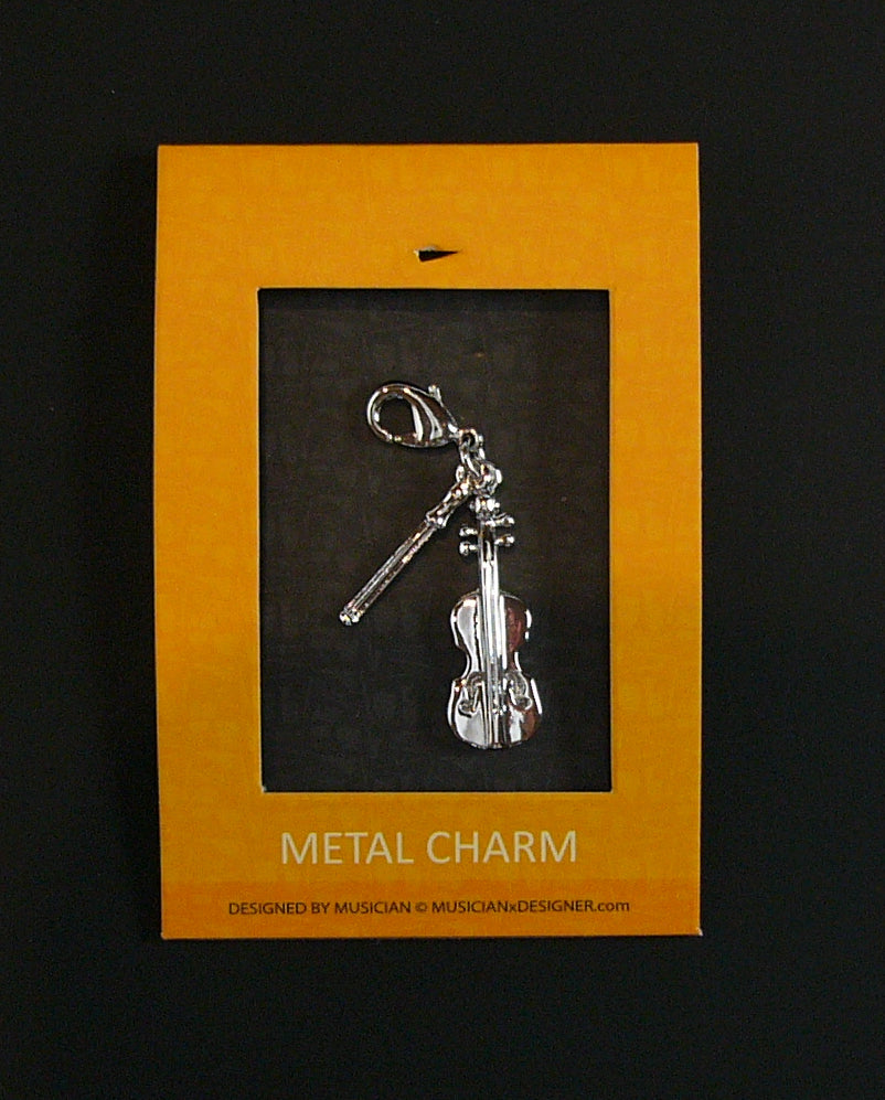 Musician Designer metal violin & bow music charm with lobster claw lock
