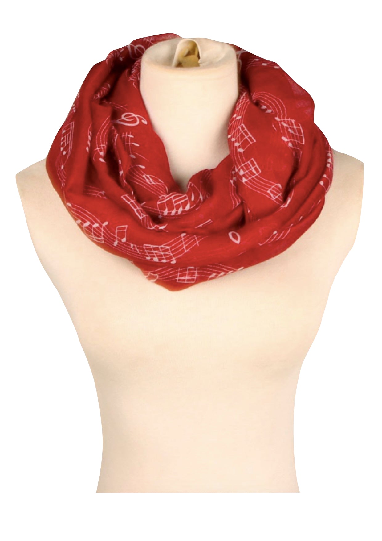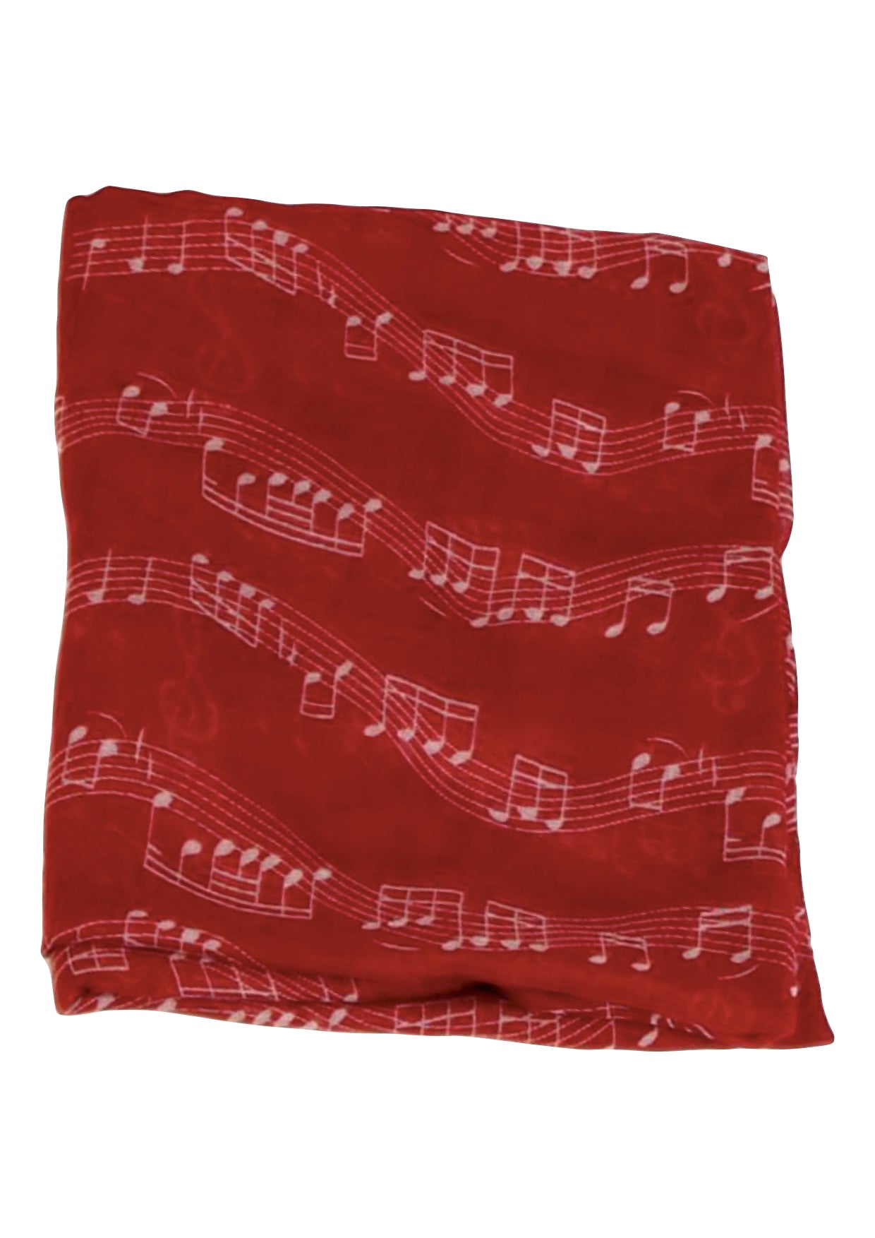 Red musical symbols quality 100% viscose neck scarf shawl.