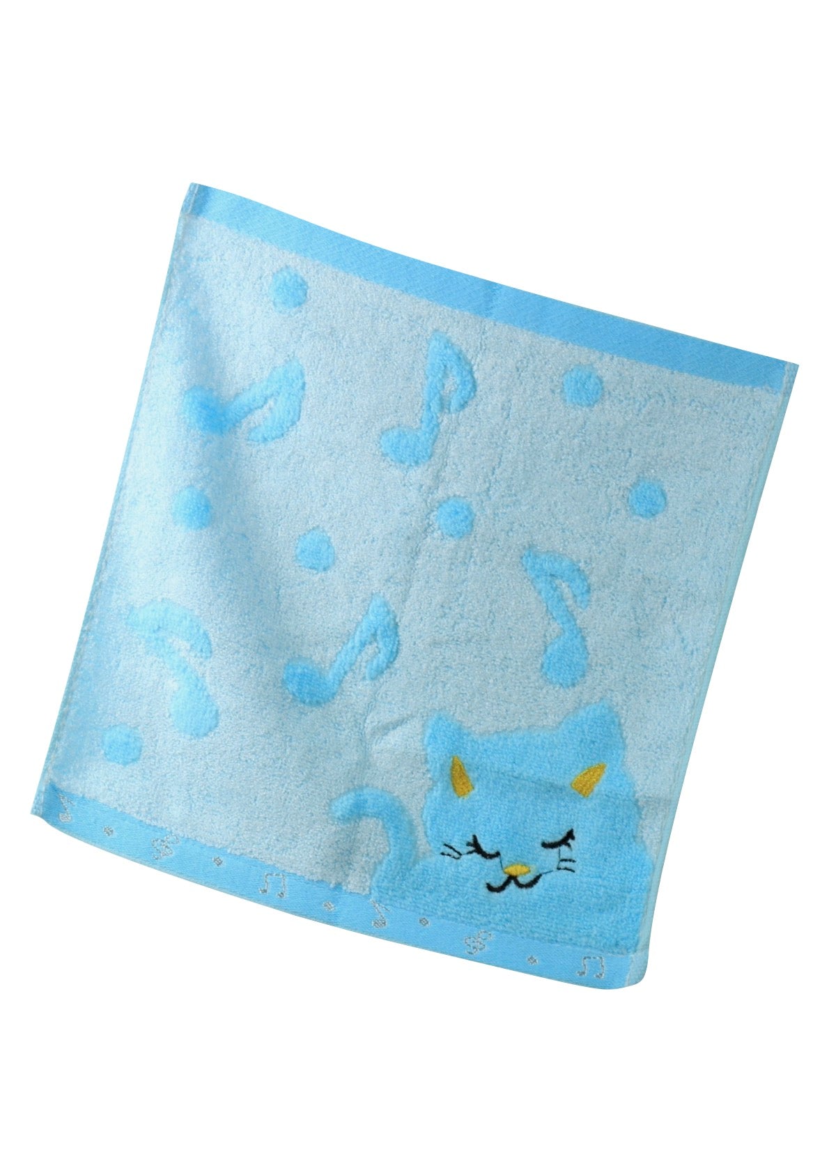 Non-twisted bamboo fibre cat & musical notes overlocked face washer bath towel BLUE