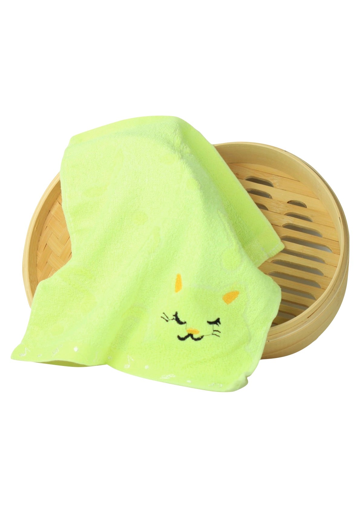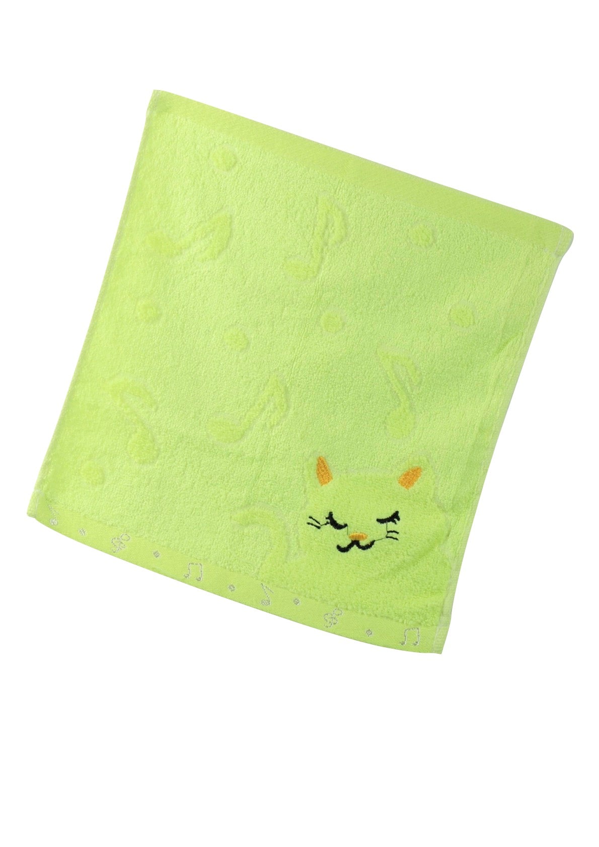 Non-twisted bamboo fibre cat & musical notes overlocked face washer bath towel GREEN