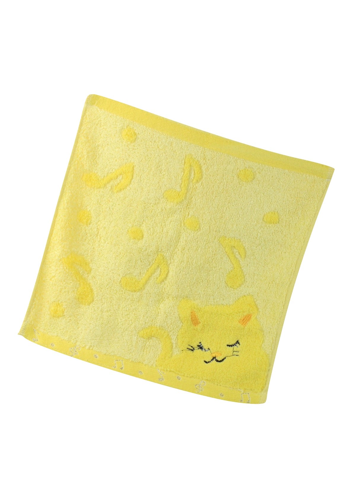 Non-twisted bamboo fibre cat & musical notes overlocked face washer bath towel YELLOW