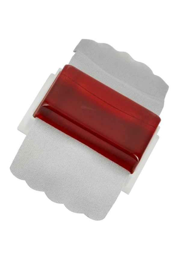Large cake of rosin is attached to a cloth cover for easy application and to avoid contact with fingers.