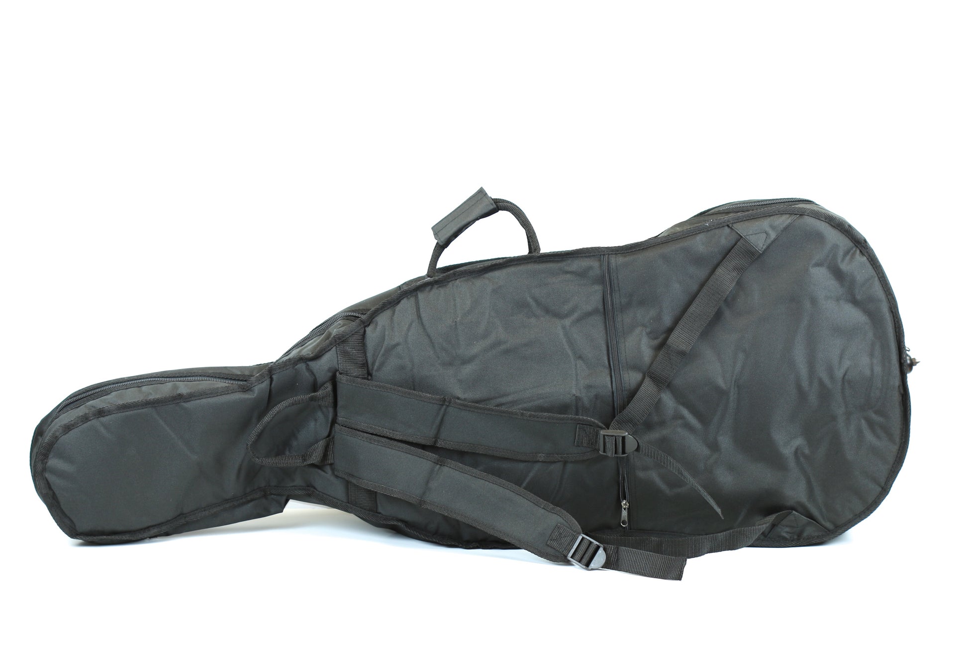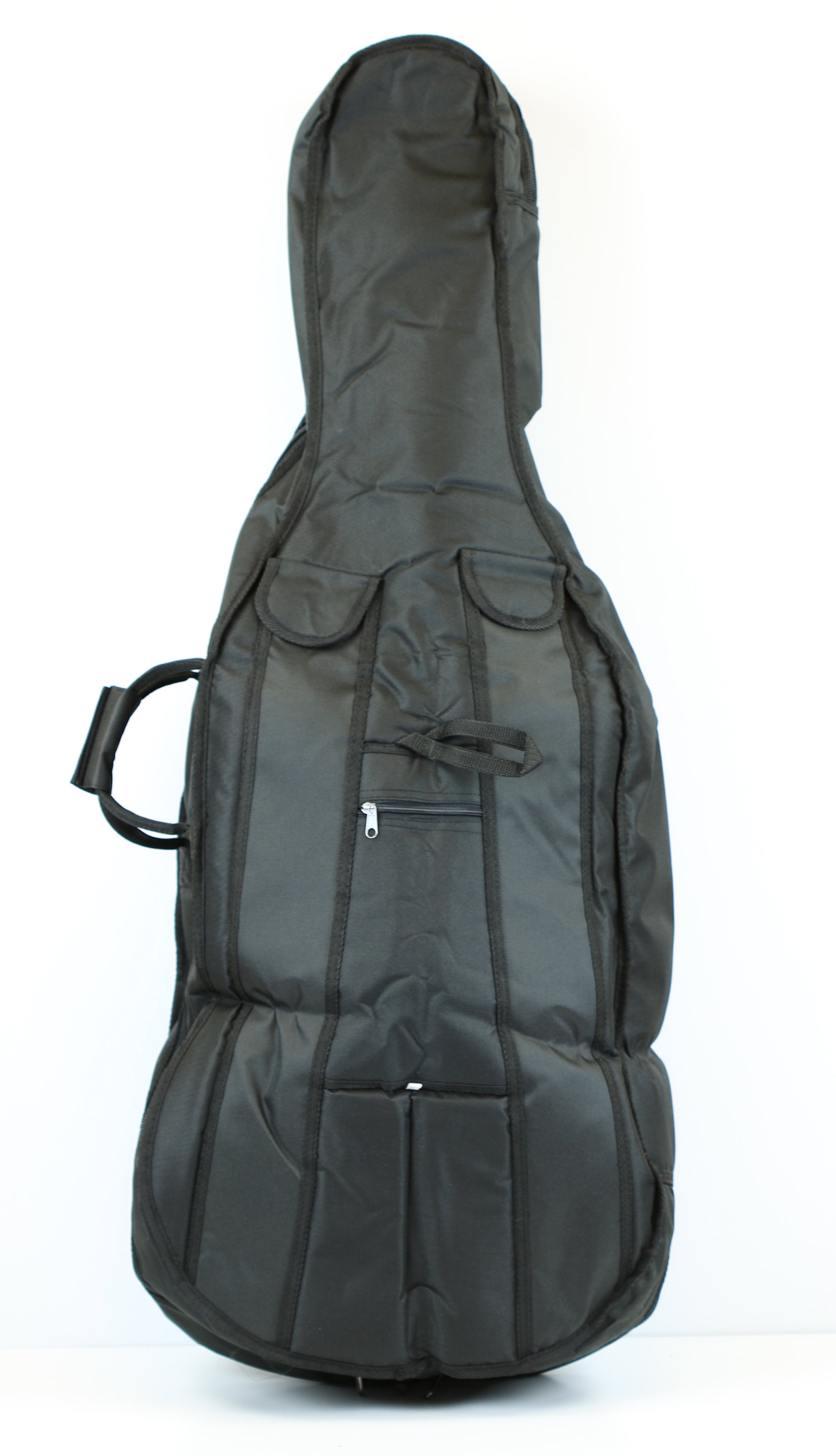 Quality black 4/4 size padded cello bag case - back straps & 2 bow holders