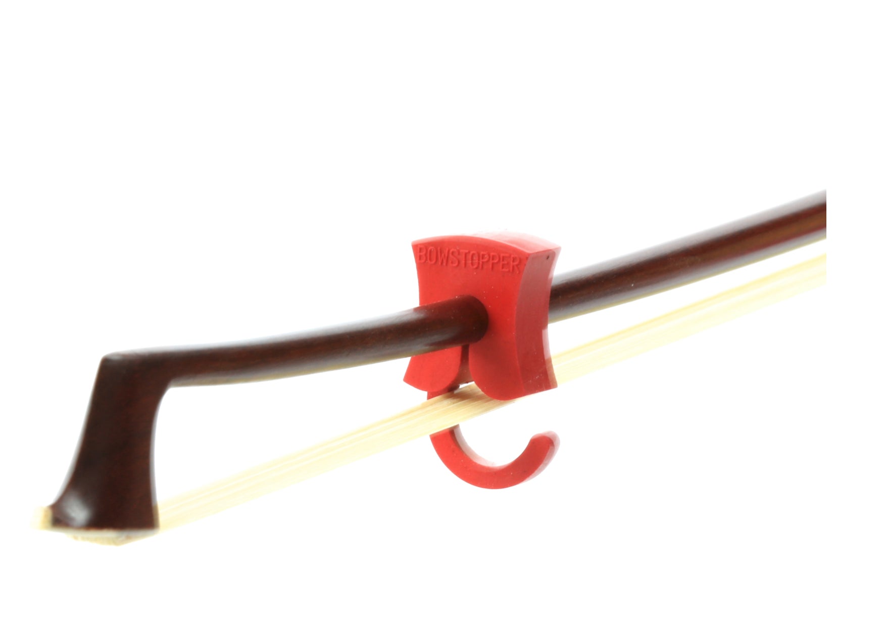 Red bowstopper - Clever new bow division aid fits all bow sizes - Violin/viola made in USA Clever new bowing aid to assist with bow division. Simply put on desired part of bow to assist with keeping bow action in that area. Bowing Styles: Hook Stroke/Tremolo - Position bowstopper in upper third of bow. Martele/Staccato - Position bowstopper near frog/nut of bow Detache/Legato - Position 2 bowstoppers to create a middle portion of bow to play within. Made of a soft rubber compound that won’t hurt your bow or violin. Simple to use even for the youngest of players! Made in USA