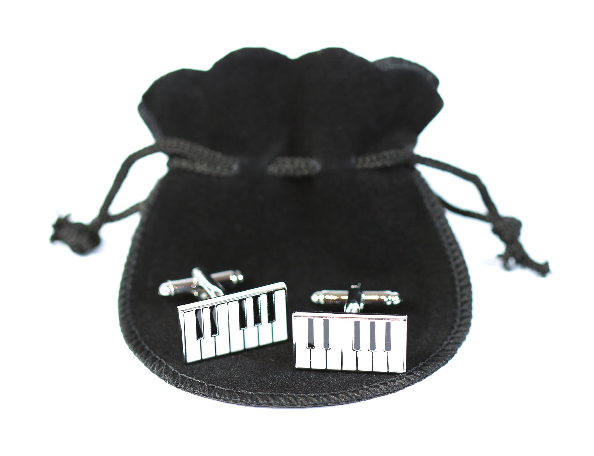 Set of 2 metal swivel barrel piano/keyboard cufflinks in black velour gift pouch.