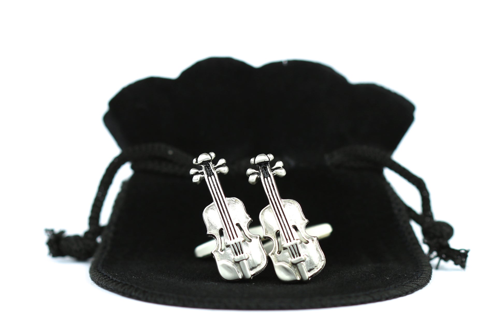 Silver plated copper barrel violin viola cufflinks free black velour gift pouch