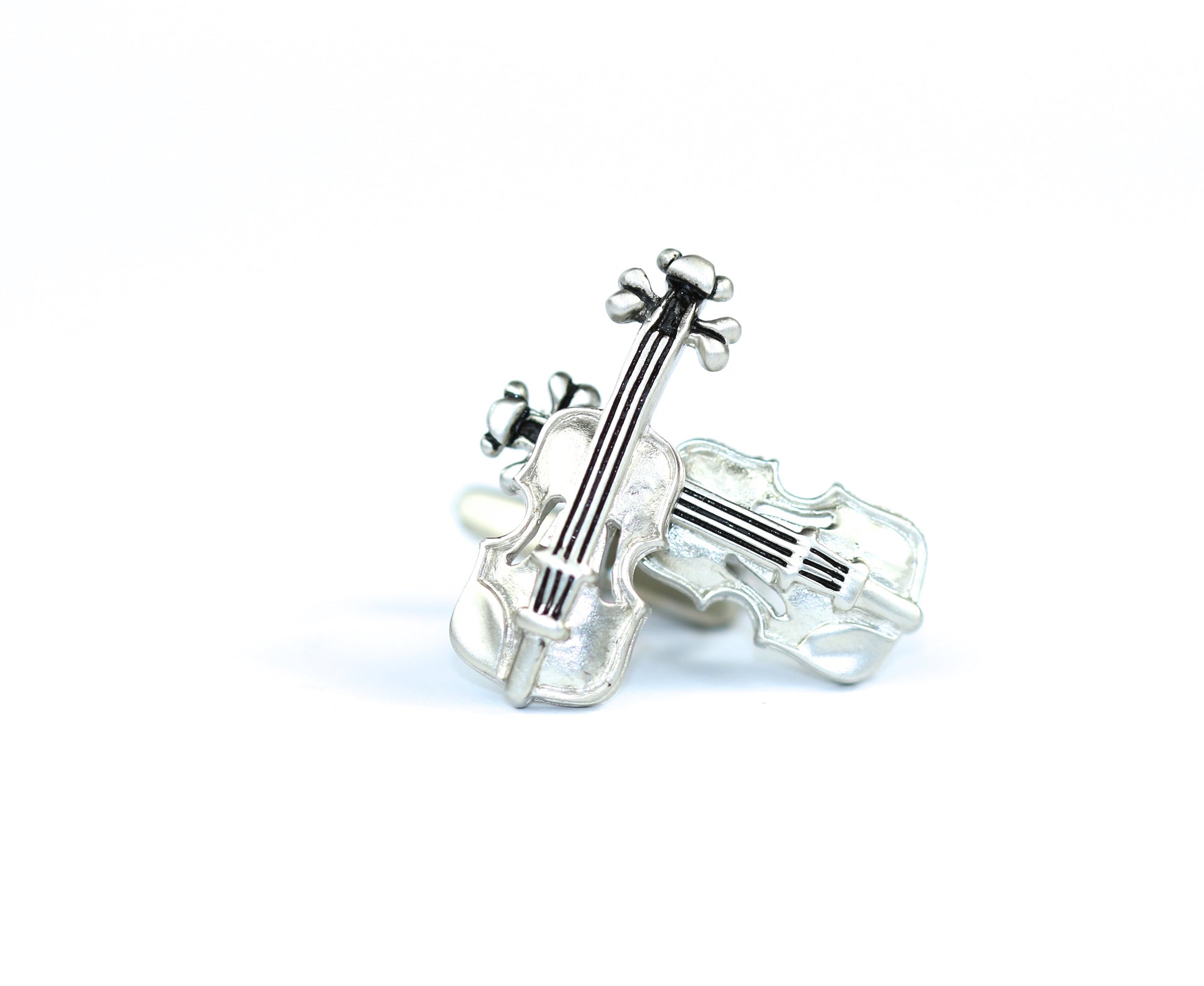 Set of 2 silver plated copper swivel barrel violin viola cufflinks with free black velour gift pouch.