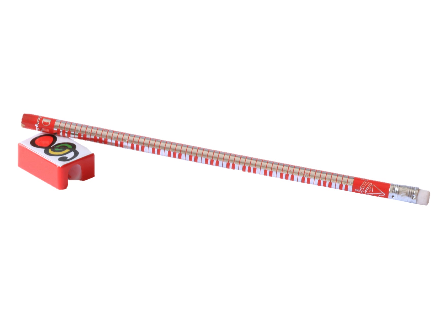 Stationery set - Red HB music keyboard print pencil & treble clef print design sharpener
