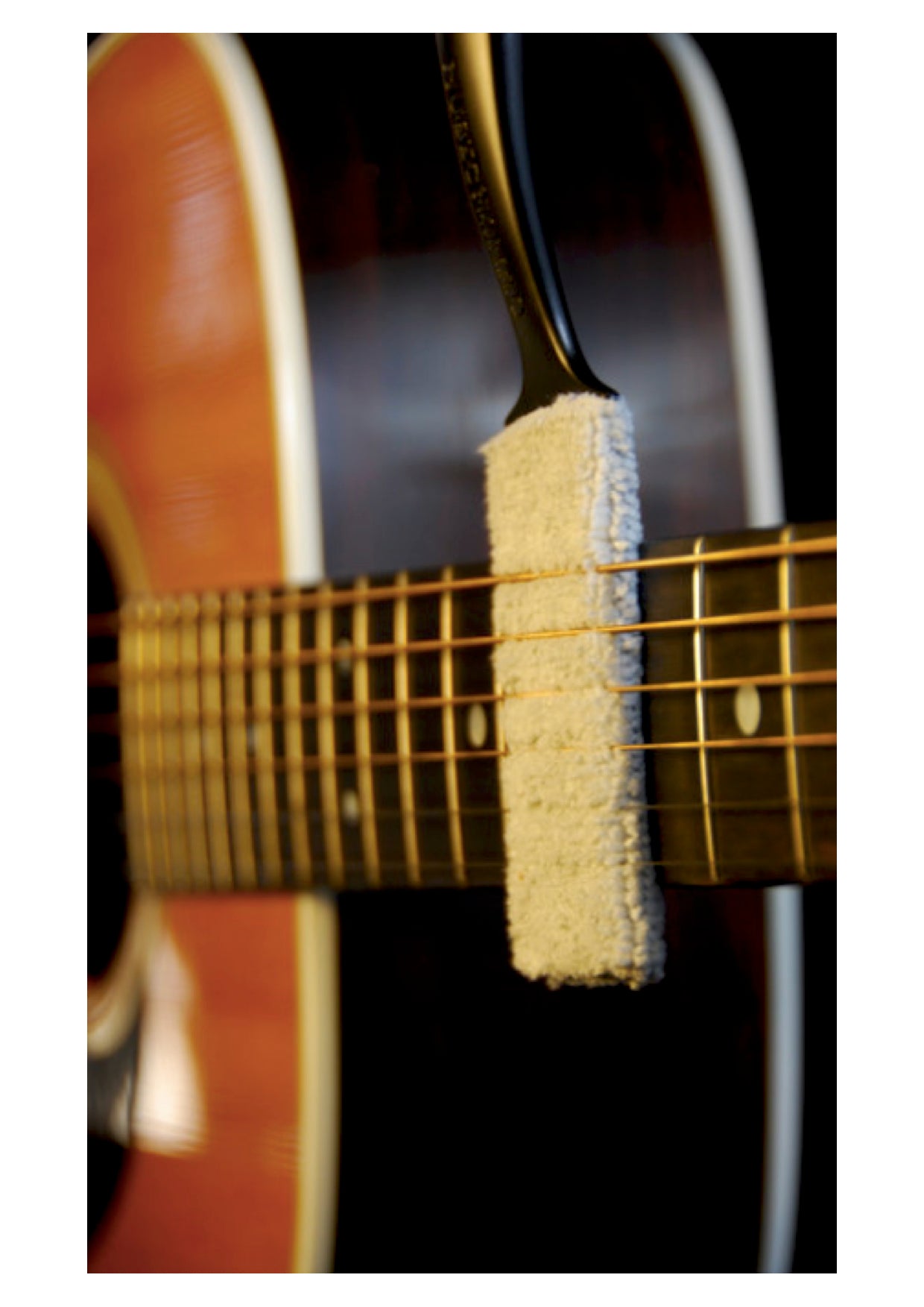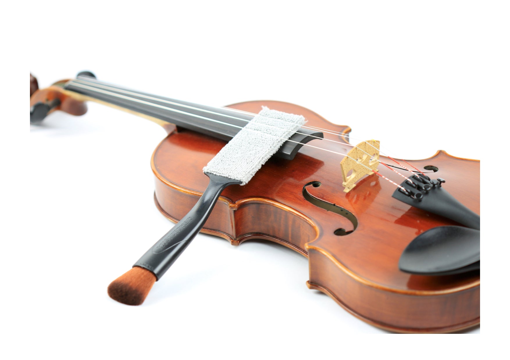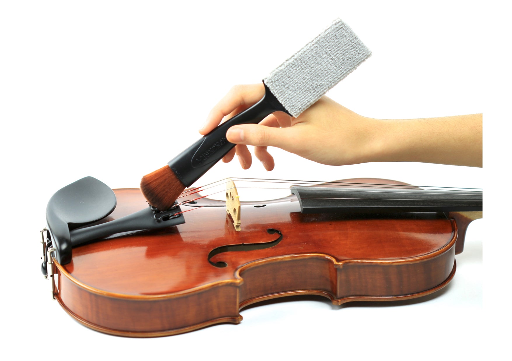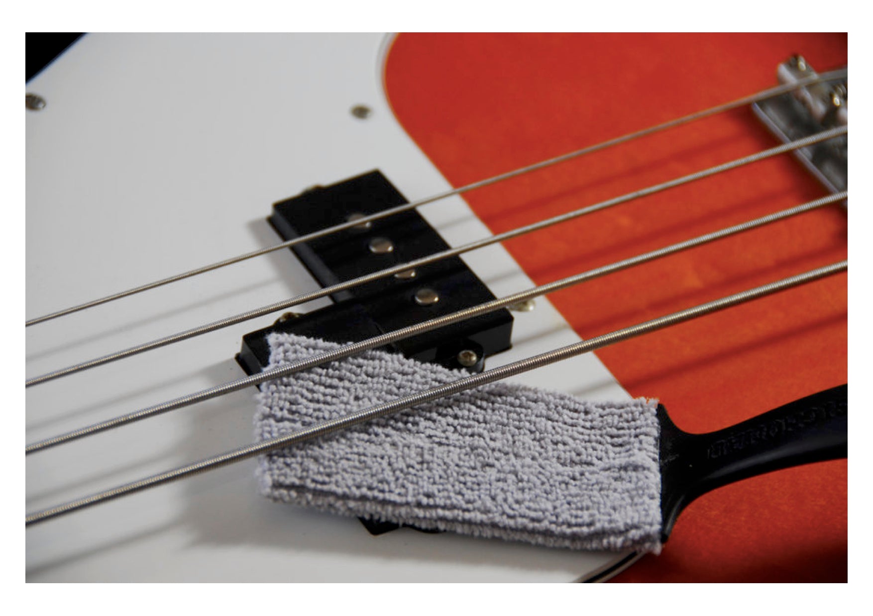 The thin flattened microfibre end is 100% lint free and can reach those hard to get to places under the fingerboard and on top and underneath strings to remove dust, fingerprints, sweat and grime.