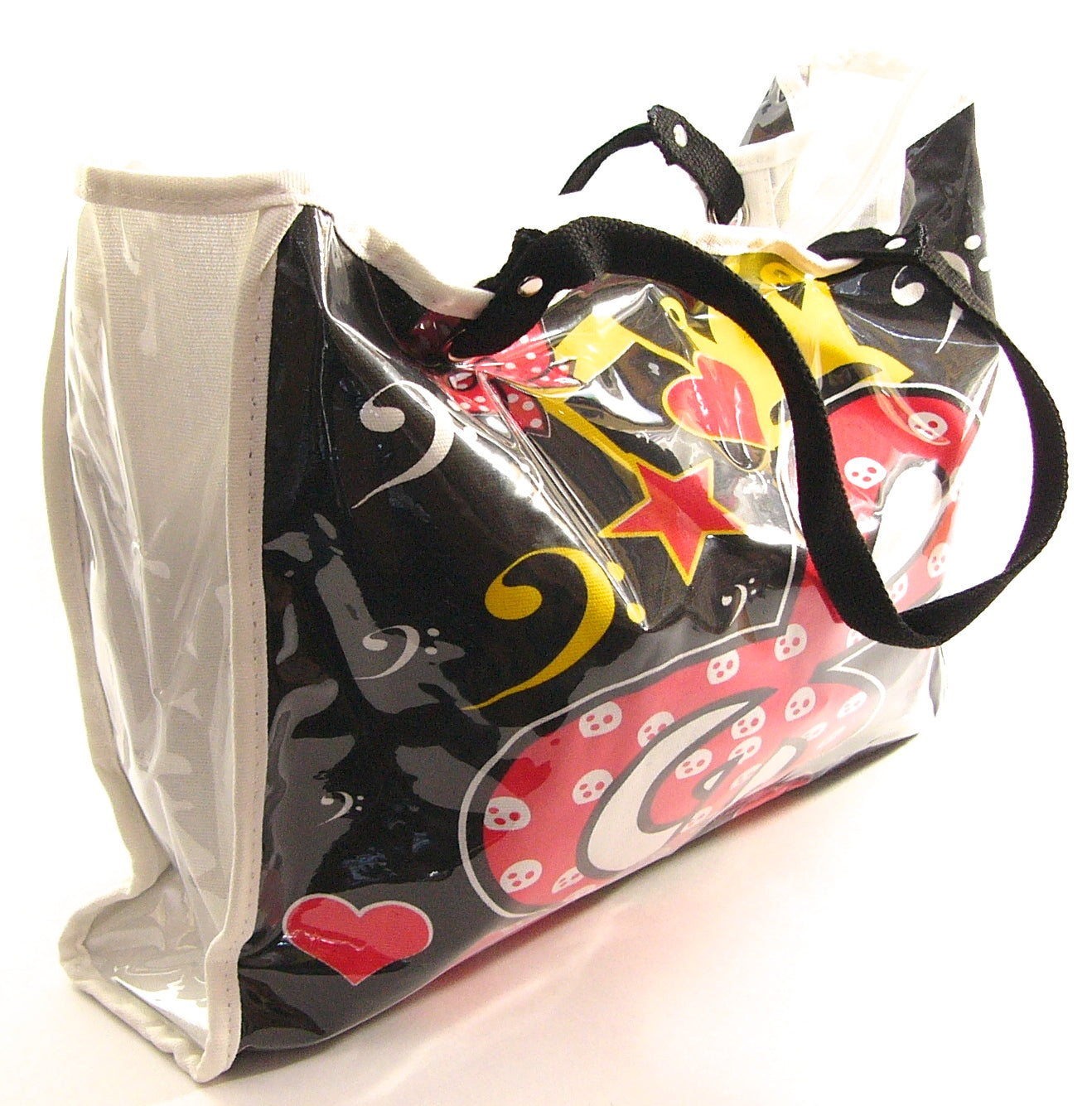 Treble clef and musical symbols pattern is printed on both sides of the bag.
