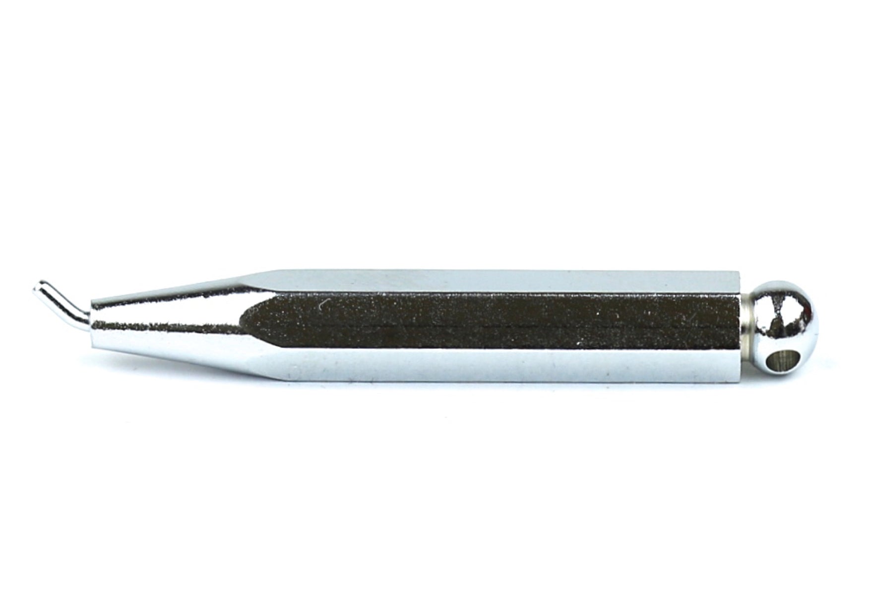 Polished chrome silver metal and measuring 6.5cm in length, it makes a useful tool to have in your instruments case.