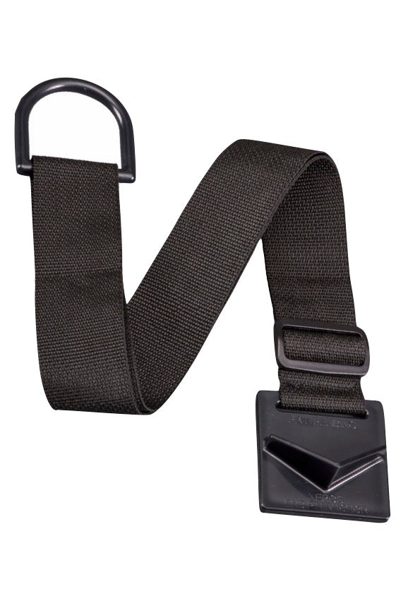 Heavy-duty, adjustable nylon strap with D-ring for chair leg